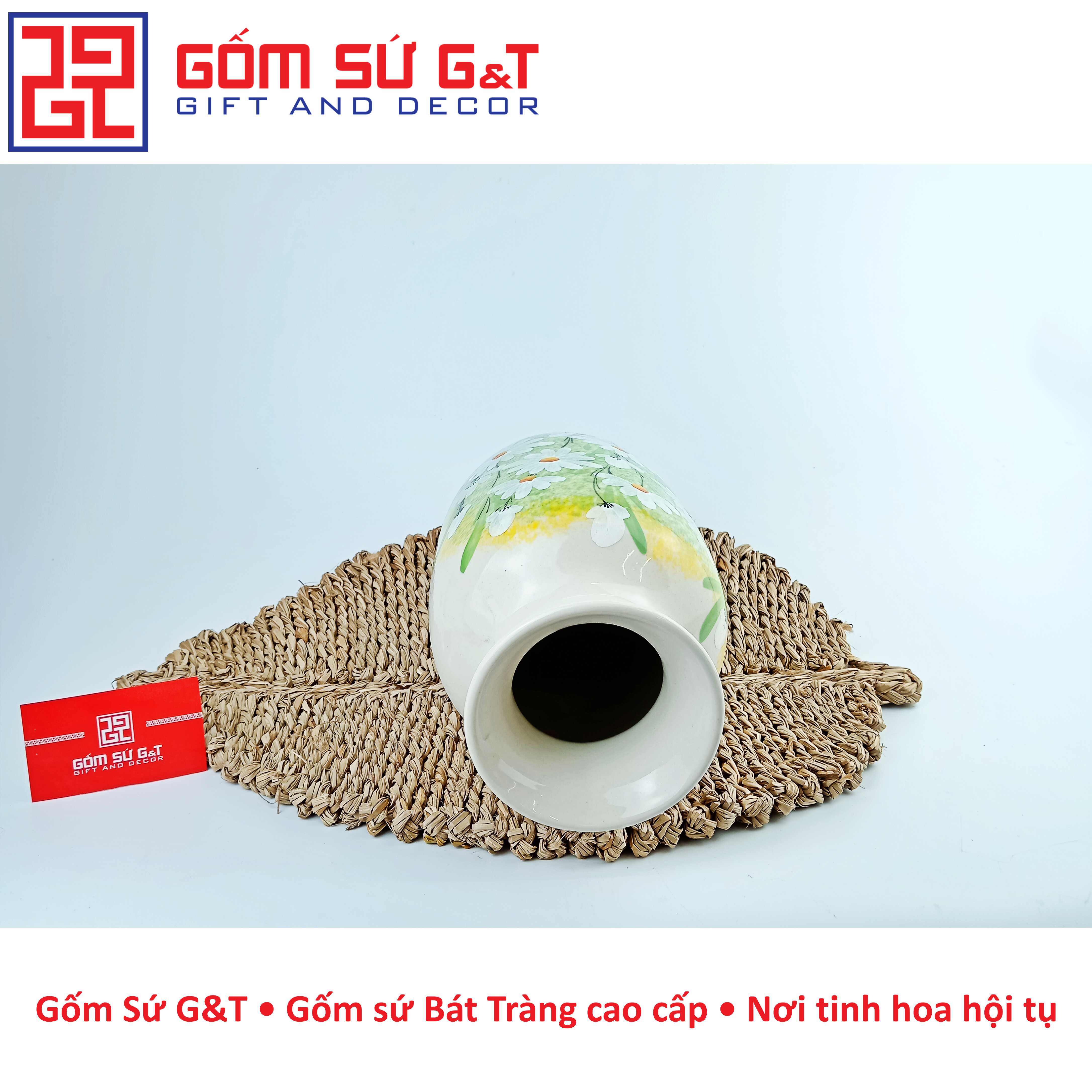Bình hoa cao cấp Bát Tràng, hàng chuẩn loại 1, dáng chum họa tiết đắp nổi được thực hiện thủ công 100% bởi bàn tay lành nghề của các nghệ nhân làng nghề. Sản phẩm