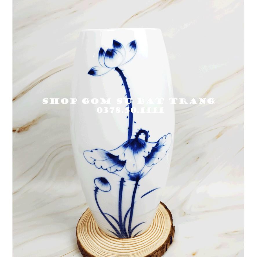 ✨Lọ hoa đẹp Bát Tràng men trắng hoa sen cao 27cm dáng bom