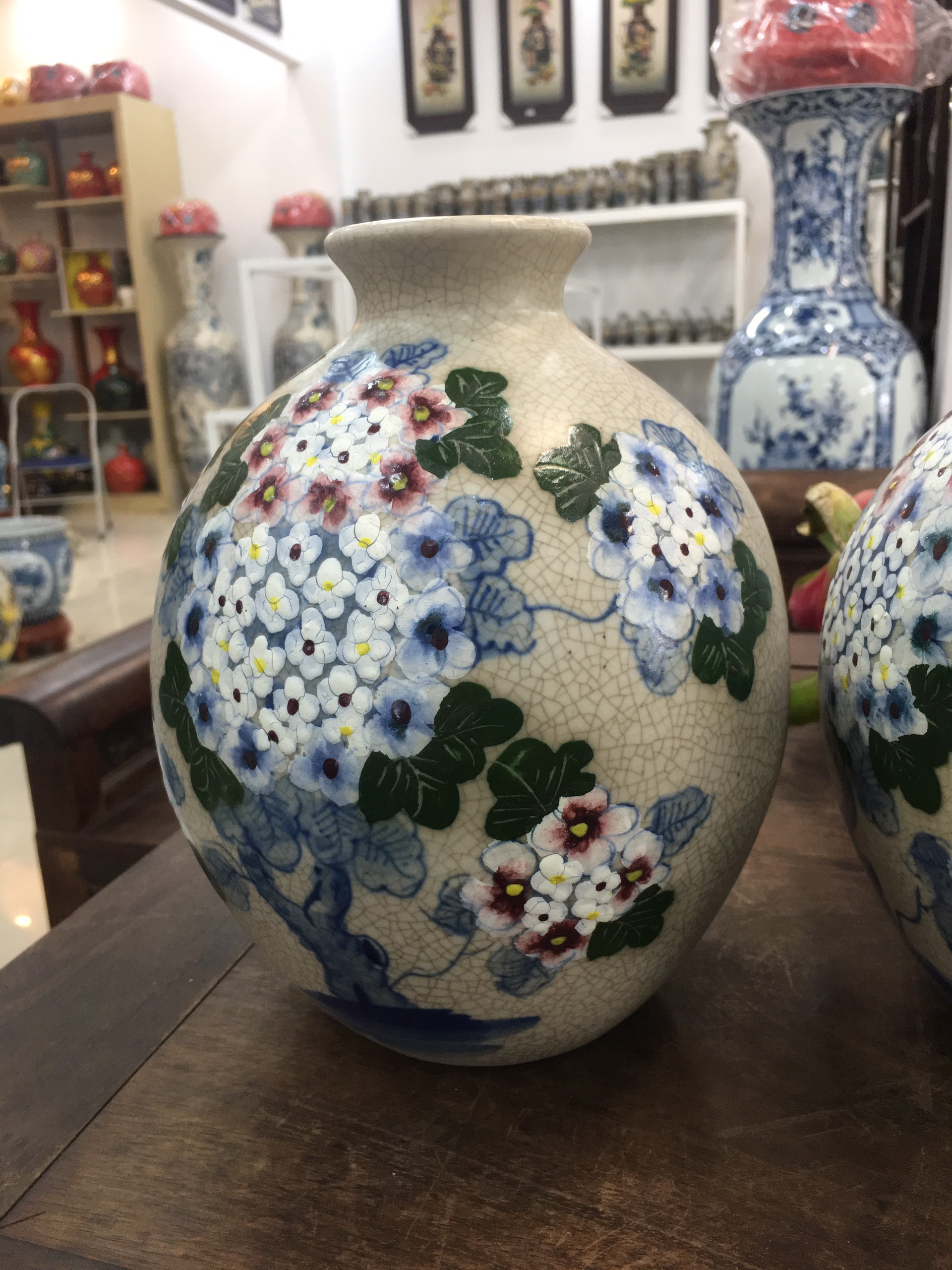 Trên tay cặp Lộc Bình Hoa Sen Men Rạn Đắp Nổi cao 50 cm giá chỉ 2xxx / cặp - Vua Lộc Bình Bát Tràng