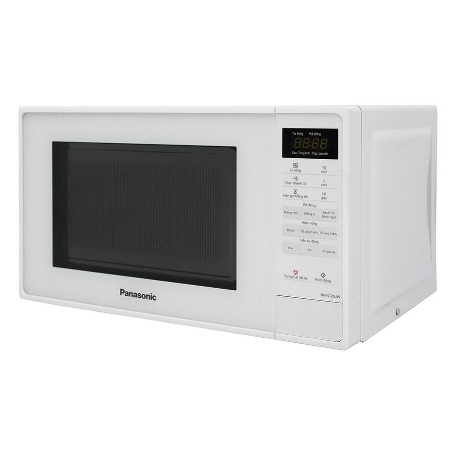 Lò vi sóng Panasonic NN-ST25JWYUE 20 lít kích thước nhỏ gọn, màu sắc trang nhã phù hợp với mọi không gian bếp Dung tích 20 lít có thể bỏ vừa gà nguyên con khoảng 1 kg Lò vi sóng đa