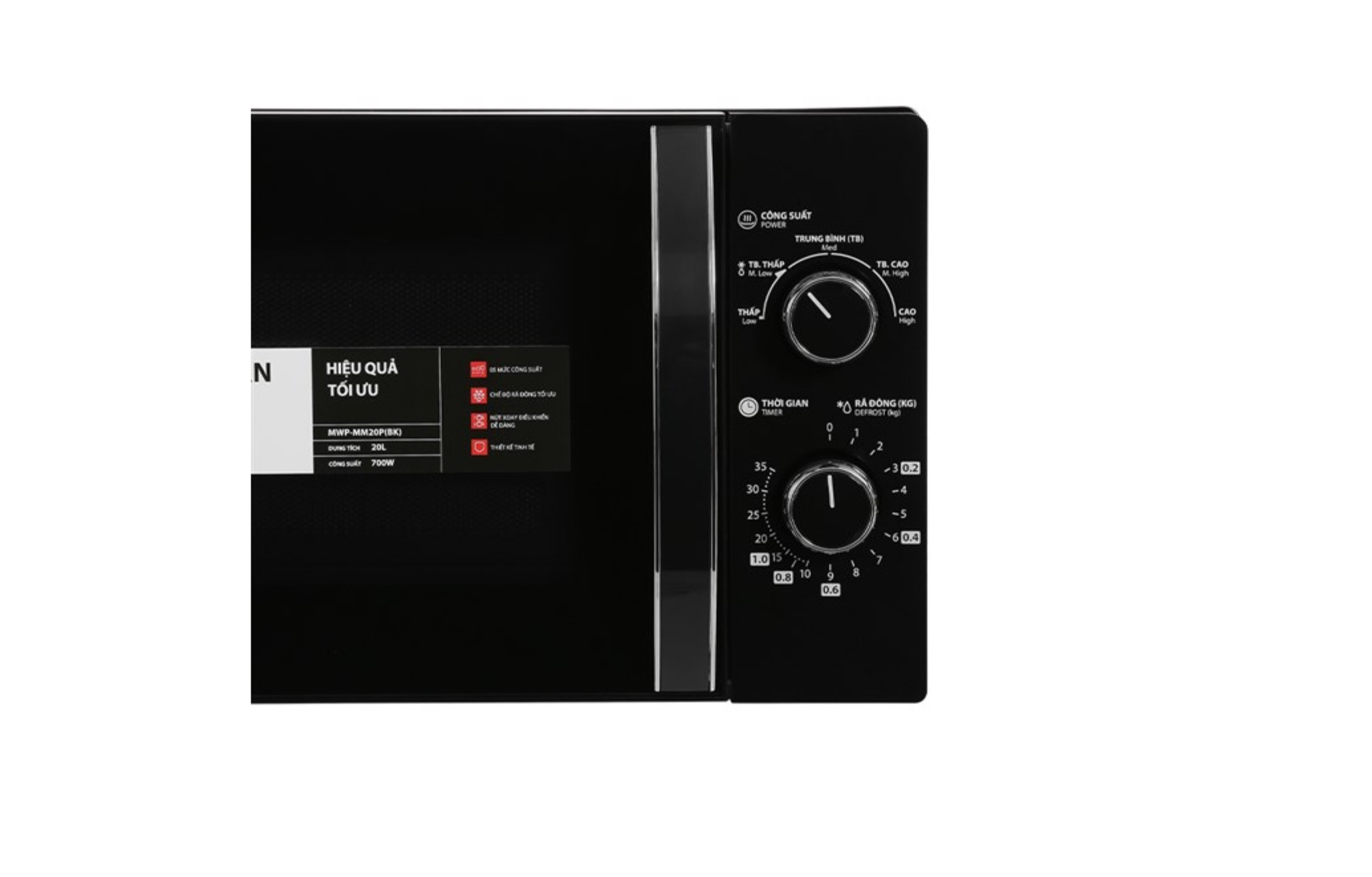ĐẶC ĐIỂM NỔI BẬT: * Lò vi sóng dung tích tổng 20 lít, kiểu dáng sang trọng * Công suất lớn 700W hoạt động mạnh mẽ và ổn định * Chức năng chính: rã đông