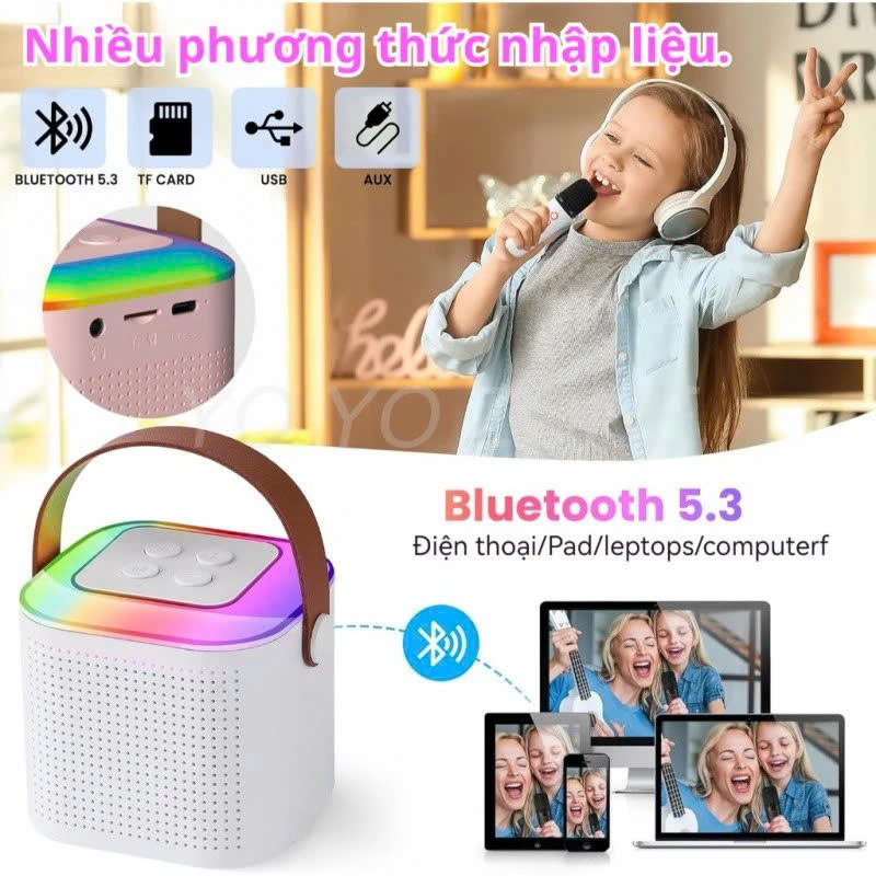 Chức năng chính: nghe nhạc, làm loa phát nhạc, loa thông báo, Hát Karaoke trên điện thoại ghi âm bài hát đã thể hiện. Kết nối: Bluetooth, USB, MicroSD Màu: Hồng, Vàng, Đen