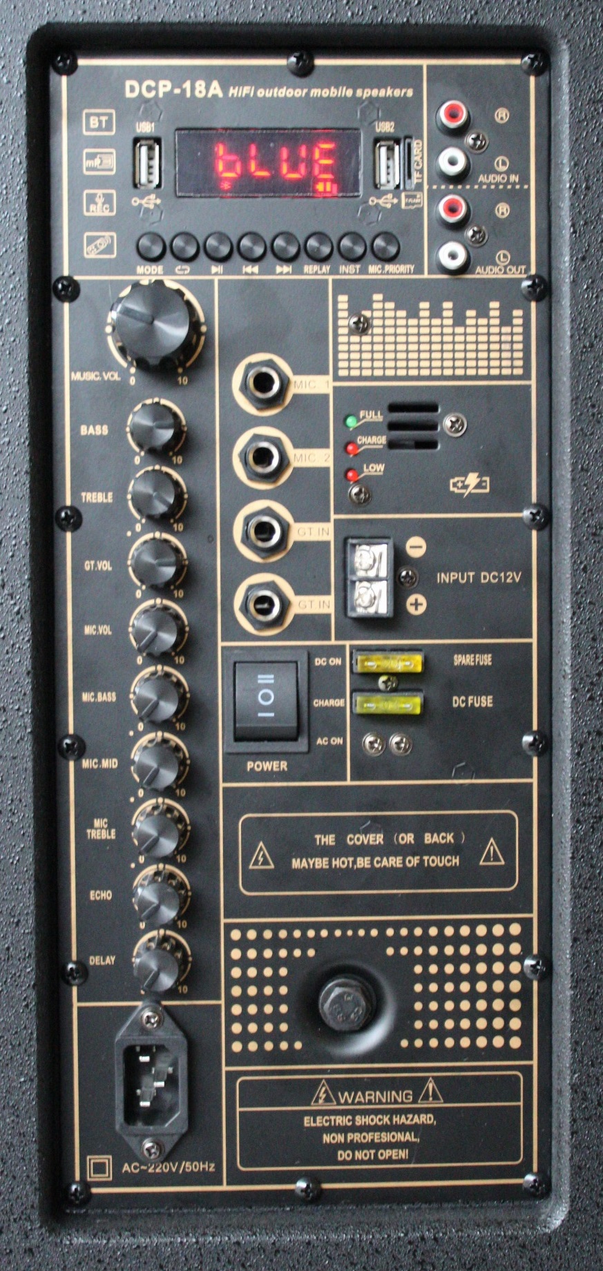 Thiết kế thùng gỗ chắc chắn dày dặn cứng cáp, tông màu mạnh mẽ. Tay nắm chắc chắn kèm bánh xe tiện lợi khi di chuyển. Hỗ trợ nhiều kết nối thông dụng hiện nay như Bluetooth, đài nghe FM, USB, thẻ nhớ, Jack bông sen, Jack Micro, Jack kết nối Guitar Cổng nguồn DC 12V tiếp thêm điện dự phòng khi sử dụng Thời gian nghe nhạc và hát karaoke lâu dài nhờ dung lượng điện ắc-quy lớn Công suất lớn 1200W uy lực nhờ có bass 50cm (5 tấc) lớn Trọng lượng: 37kg Kích thước: 595 x 568 x 973 (mm) Remote điều khiển loa từ xa nhanh chóng Tặng kèm 2 micro không dây tiện dụng Thương hiệu: Daichipro