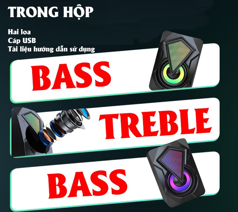 Mô tả sản Phẩm Dòng loa 2.1 kênh thoải mái nghe nhạc, xem phim, chơi game, đèn LED cực đẹp Kết nối đơn giản Âm bass đầy mạnh mẽ, trung thực với tần số