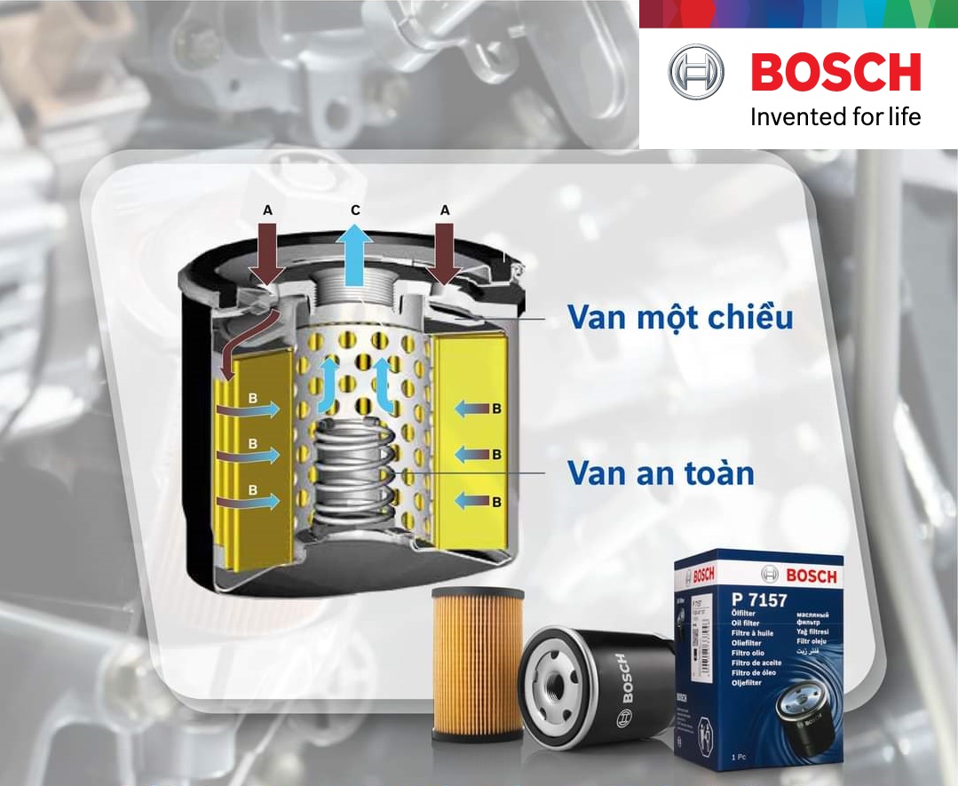 • Lọc Nhớt Bosch_Sản phẩm thay thế hoàn hảo cho phụ tùng nguyên bản • Ưu điểm vượt trội của bộ lọc nhớt Bosch: - Bộ lọc có cấu tạo vi sợi, đa tầng tạo