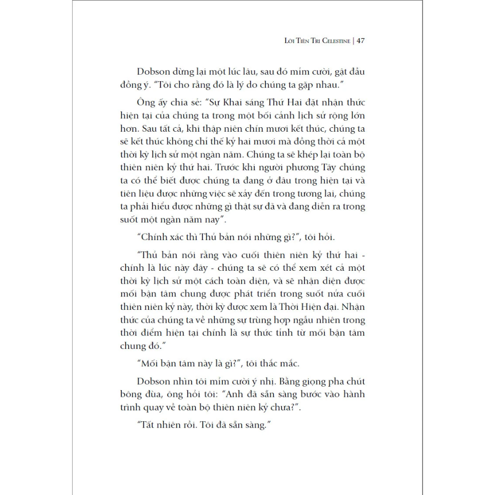 Không hàn lâm, khó hiểu như những quyển sách cùng chủ đề, bằng ngôn ngữ bình dị, “Lời tiên tri Celestine” đã truyền tải thông điệp về mặt tâm linh một cách mới mẻ dưới dạng tiểu thuyết, lôi cuốn người đọc từ đầu đến cuối.