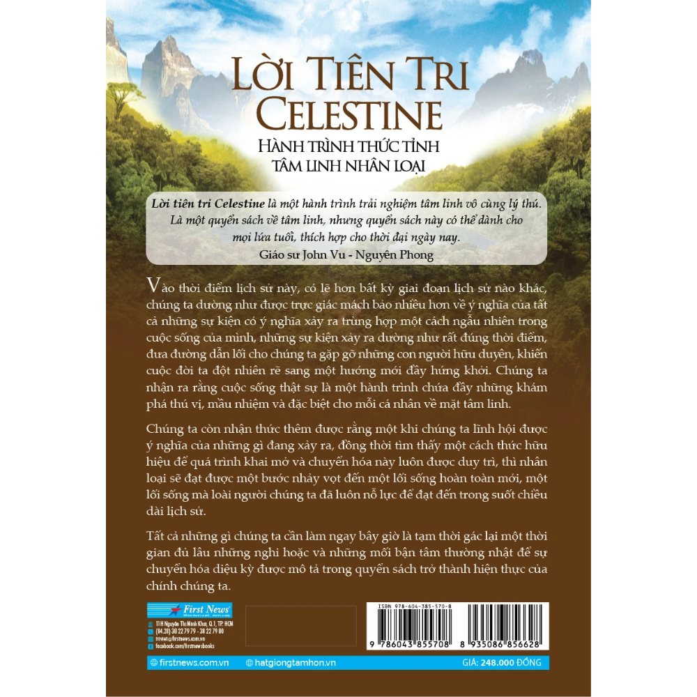 “Lời tiên tri Celestine là một quyển sách về tâm linh, nhưng nó có thể dành cho mọi lứa tuổi, thích hợp cho thời đại ngày nay. Nhiều người sẽ cảm nhận được những điều sâu sắc trong quyển sách này và một số khác sẽ thích thú với những tình tiết, biến chuyển bất ngờ của một hành trình đầy phiêu lưu, mạo hiểm và vô cùng ý nghĩa.” - Giáo sư John Vu - Nguyên Phong.