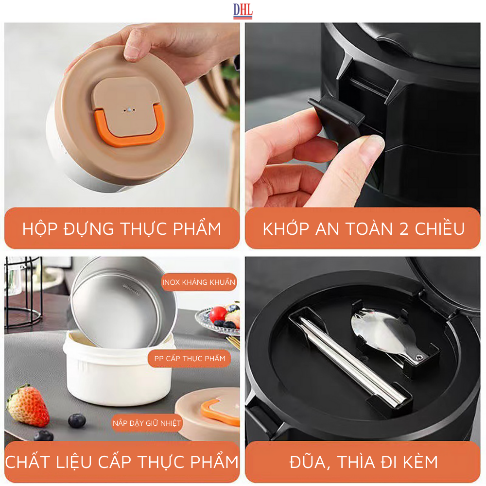 Chất liệu dùng cho thực phẩm: Được làm bằng thép không gỉ 304 dùng cho thực phẩm. KHÔNG CHỨA BPA và không độc hại. Hộp đựng cách nhiệt được FDA chấp thuận cho thực phẩm tốt cho