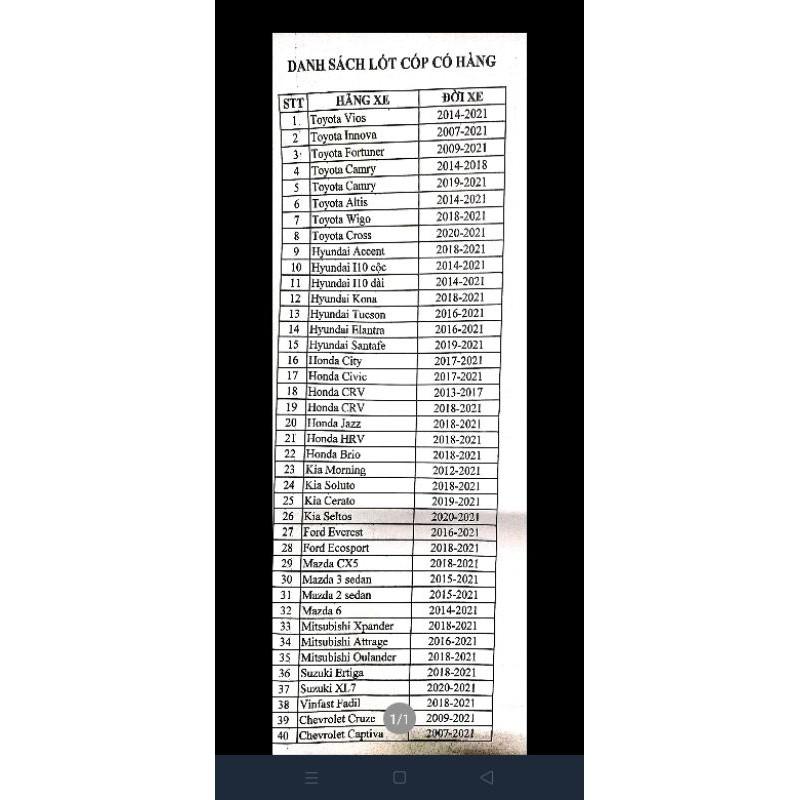 Lót cốp ô tô, lót cốp xe ô tô đủ các dòng xe thông dụng