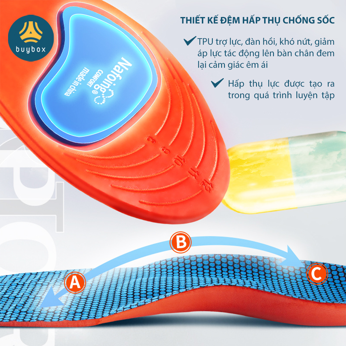 LÓT GIÀY THỂ THAO EVA CÔNG DỤNG NỔI BẬT Lót giày thể thao được thiết kế rãnh giảm sốc ở mặt dưới giúp giảm mỏi lòng bàn chân và gel chống thốn gót Lót giày