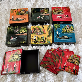 Hộp lót ly có nhiều mẫu khác nhau cho bạn lựa chọn dễ dàng, vẽ đồng quê và mai đào đa dạng, làm cho hộp lót ly thêm phần đẹp mắt