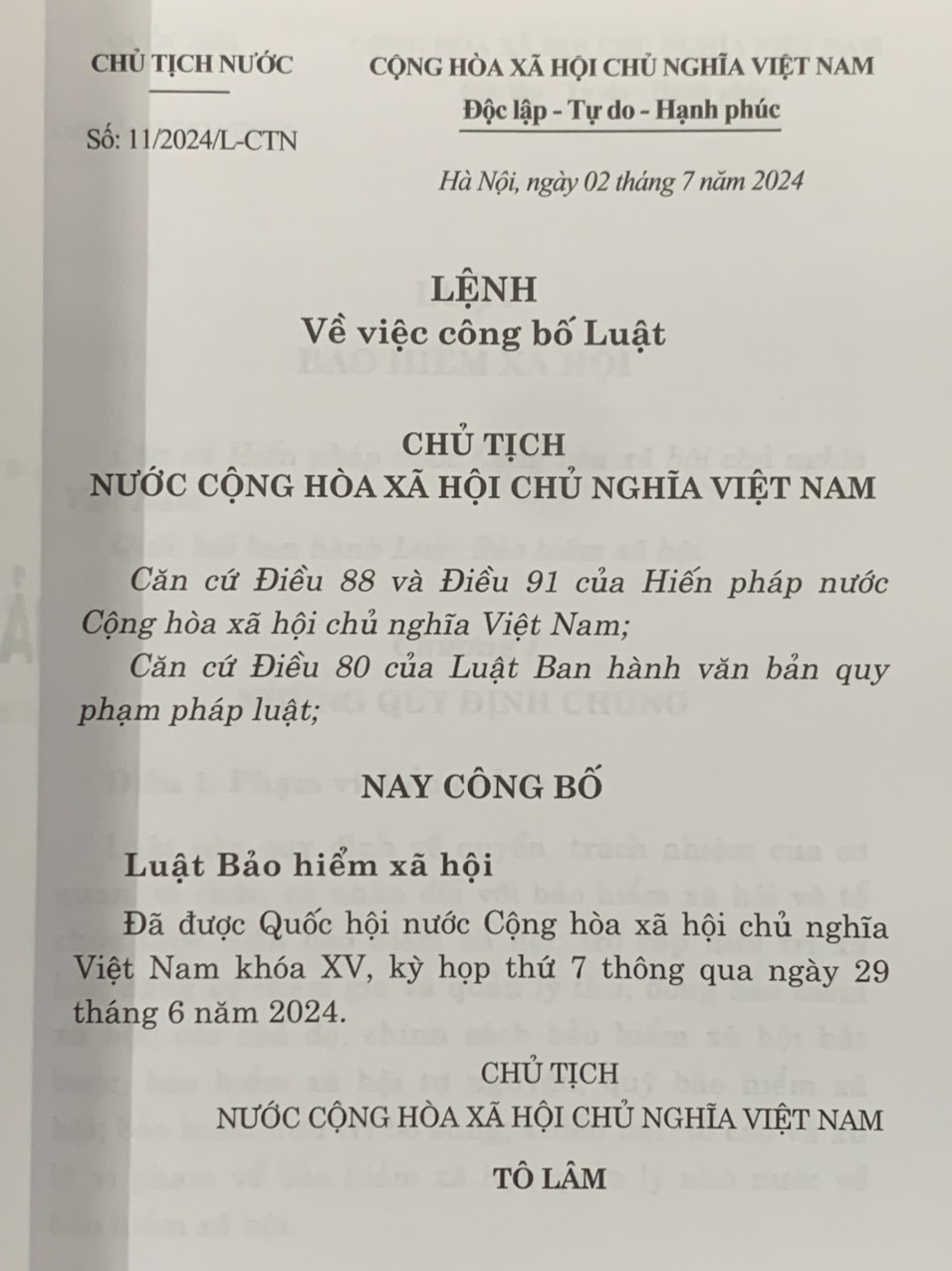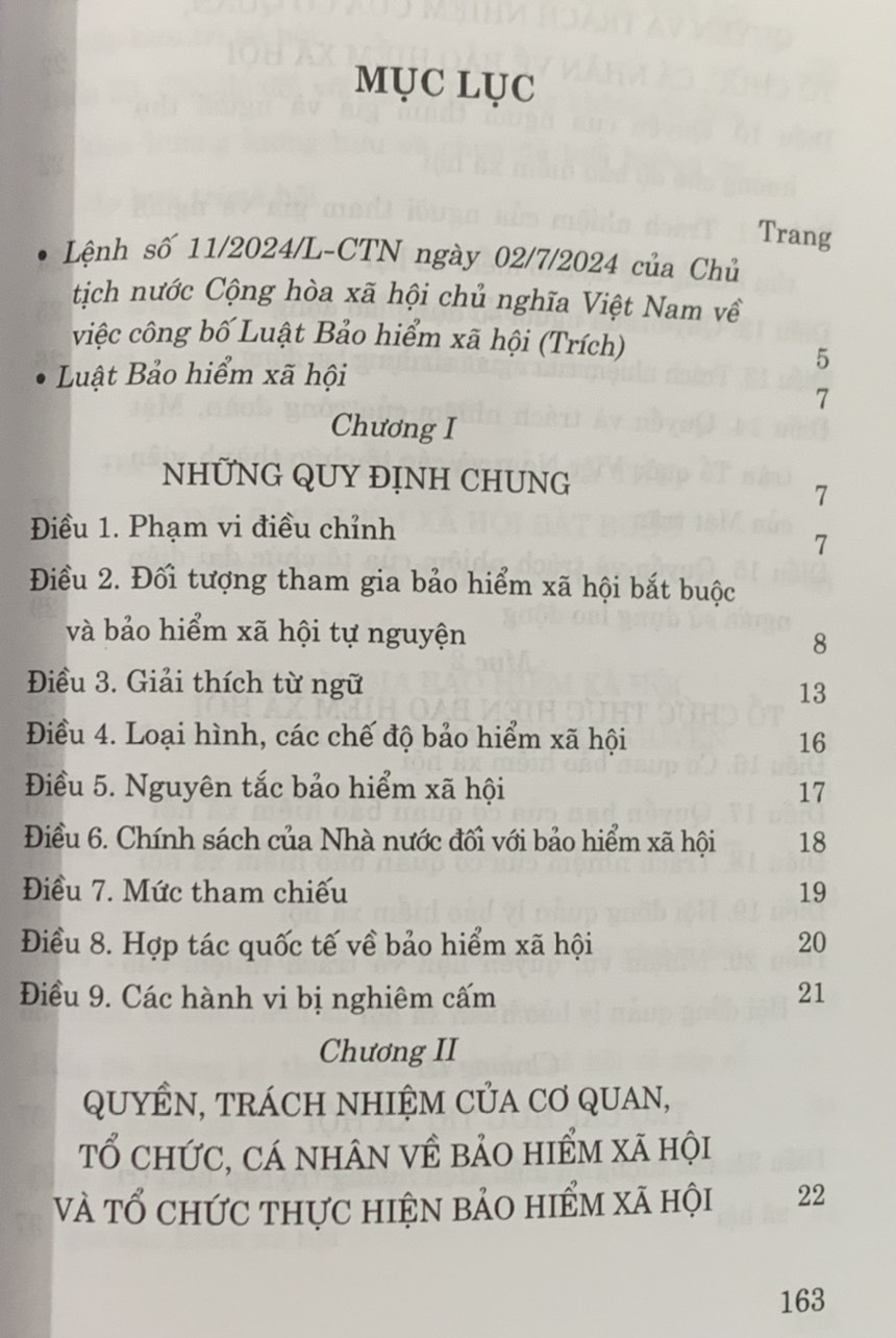 Mua tại TiktokLuật Bảo hiểm xã hội năm 2024 NXB: Chính trị Quốc gia Sự thật Tác giả: Quốc Hội Ngày xuất bản: 7.2024 Khổ sách:13*19cm Công ty phát hành: NXB Chính trị Quốc gia Sự thật Hình thức bìa: Bìa mềm Giá bìa: 42.000 đ Lời giới thiệu: Luật Bảo hiểm xã hội đã được Quốc hội nước Cộng hòa xã hội chủ nghĩa Việt Nam khóa XV , kỳ họp thứ 7, thông qua ngày 29 tháng 6 năm 2024.