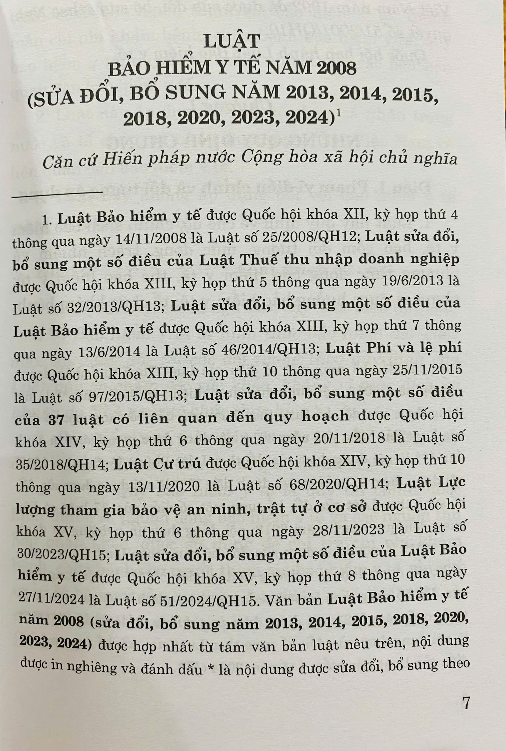 Để tạo điều kiện thuận tiện cho bạn đọc trong việc tra cứu và áp dụng Luật Bảo hiểm y tế, Nhà xuất bản Chính trị quốc gia Sự thật xuất bản cuốn sách Luật Bảo hiếm y tế năm 2008 (sửa đổi, bổ sung năm 2013, 2014, 2015, 2018, 2020, 2023, 2024). Nội dung cuốn sách là văn bản luật được hợp nhất giữa Luật Bảo hiểm y tế năm 2008 và bảy văn bản luật nêu trên.
