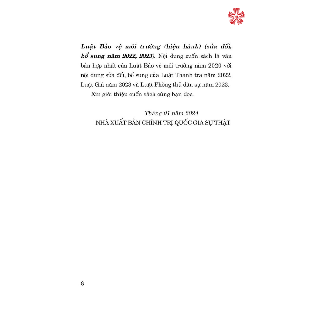 Cuốn sách “Luật Bảo vệ môi trường (hiện hành) (sửa đổi, bổ sung năm 2022, 2023)” cung cấp một cái nhìn toàn diện về những thay đổi và cập nhật trong luật pháp Việt Nam liên quan đến bảo vệ môi trường. Đây là một nguồn tài liệu quý giá cho các nhà hoạch định chính sách, học giả, và công dân quan tâm đến việc bảo tồn và cải thiện môi trường sống.
