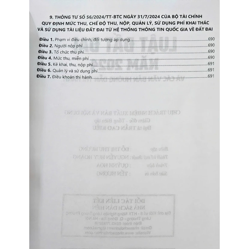 Mua tại TiktokLuật đất đai năm 2024 và các văn bản hướng dẫn thi hành Tác giả: Quốc Hội Nhà xuất bản Công an nhân dân Công ty phát hành: Dân Hiền Xuất bản năm: 8.2024 Số trang: 727 trang Kích thước: 19 x 27 cm Giá bìa: 500.000 đ Hiệu lực thi hành