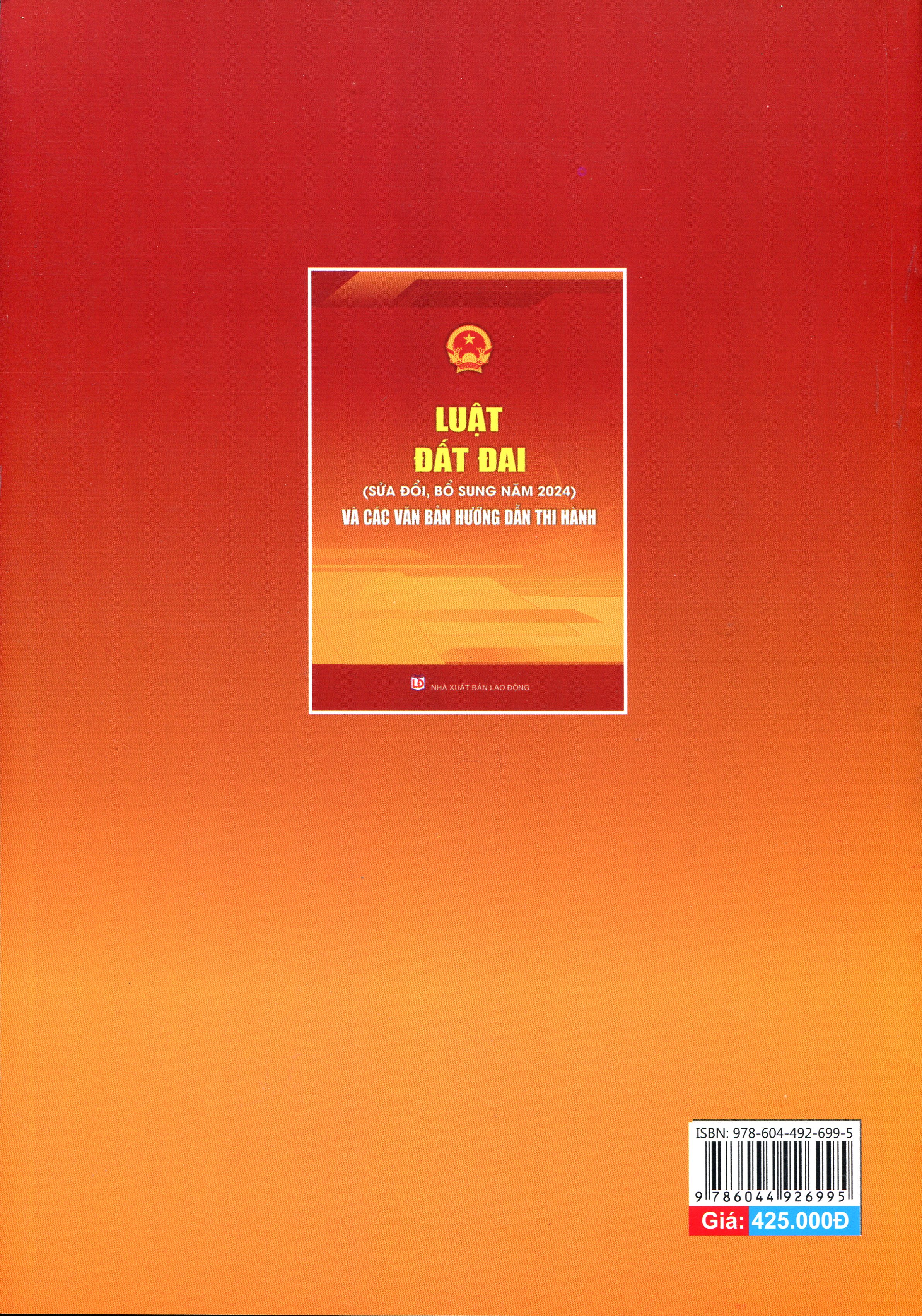 Luật Đất đai (sửa đổi, bổ sung năm 2024) và các văn bản hướng dẫn thi hành Tác giả: Quốc Hội Nhà xuất bản: Lao Động Công ty phát hành: Nhà sách Tư Pháp Ngày