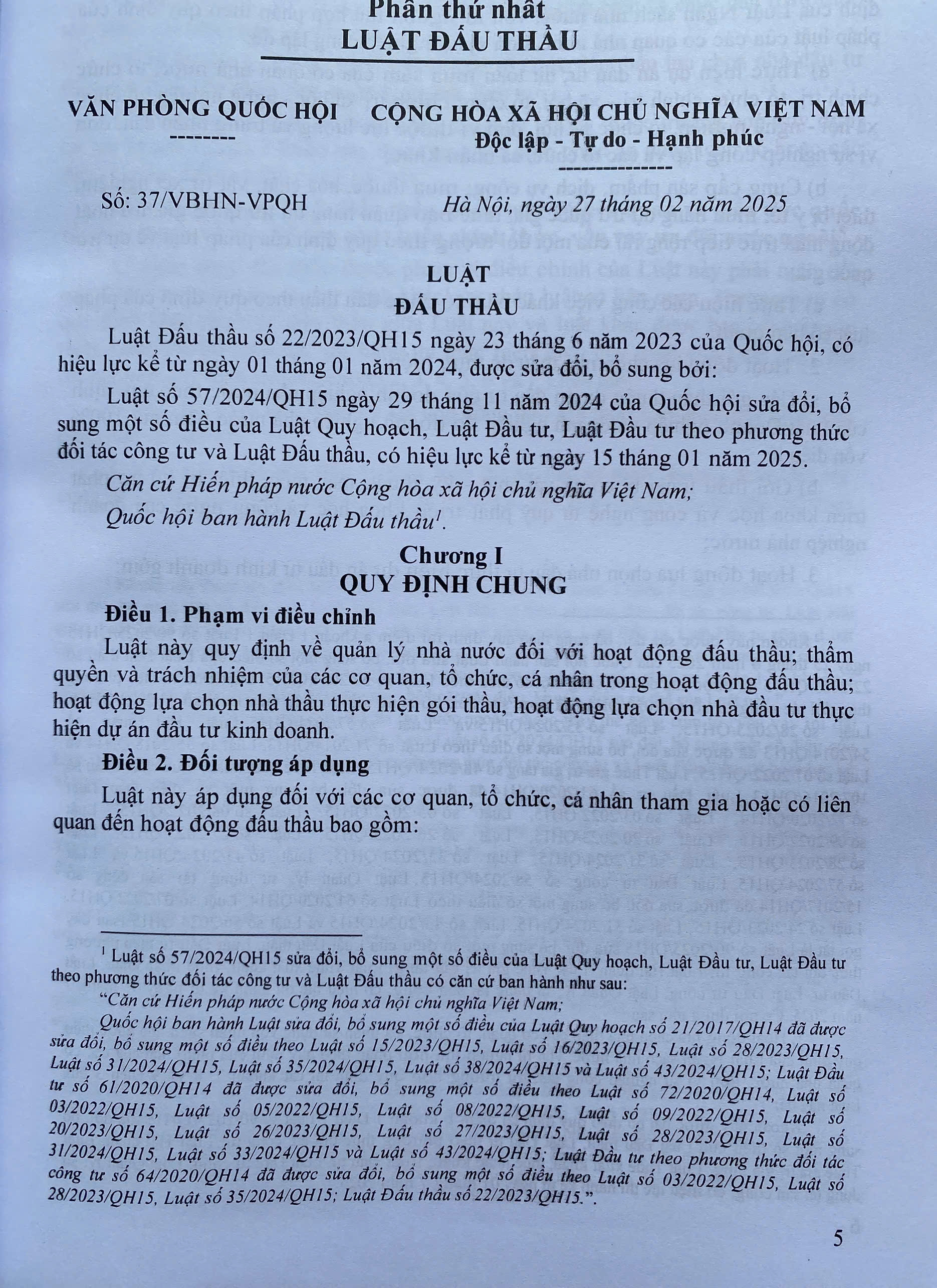 Luật sửa đổi, bổ sung một số điều của Luật Đấu thầu được Quốc hội Khóa XV thông qua tại Kỳ họp thứ 9 ngày 25 tháng 6 năm 2025, có hiệu lực thi hành