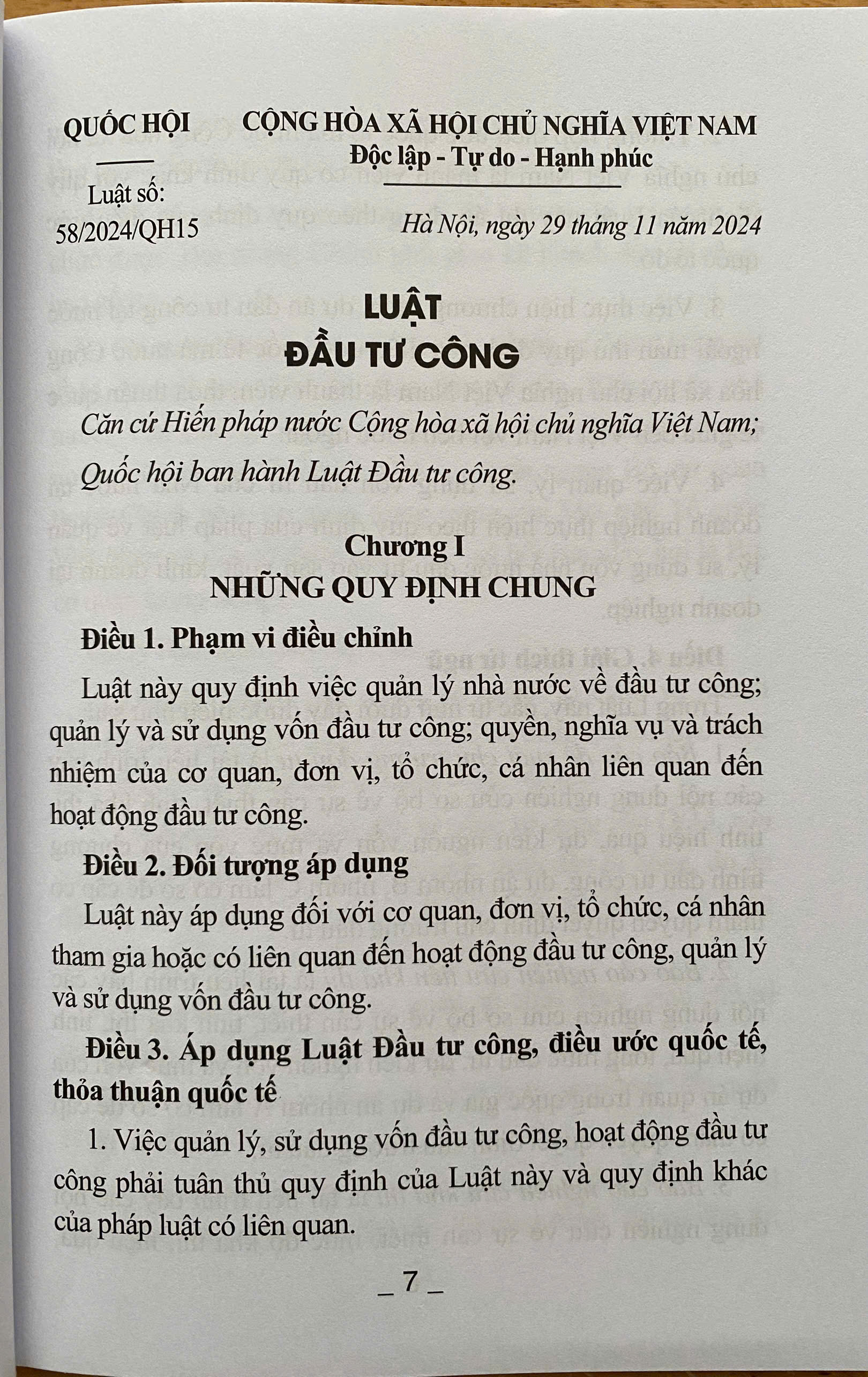 Mua tại TiktokLuật Đầu Tư Công số 58/2024/ QH15 đã được Quốc Hội khoá XV thông qua ngày 29 tháng 11 năm 2024. Luật gồm có 7 chương, 102 điều. Luật có hiệu lực áp dụng từ ngày 01 tháng 01 năm 2025.