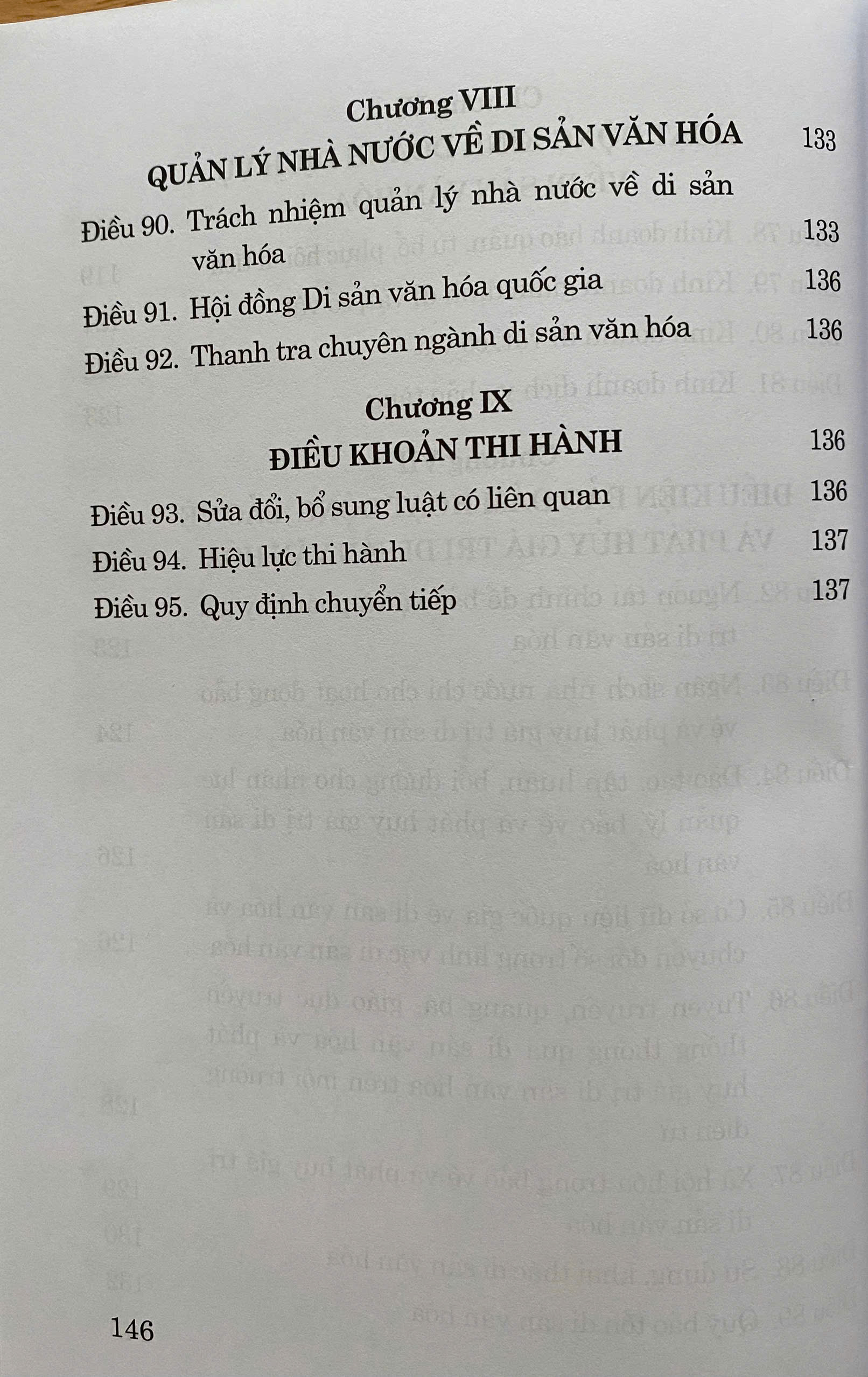 Mua tại TiktokLuật Di Sản Văn Hoá số 45/2024/ QH15 đã được Quốc Hội thông qua ngày 23 tháng 11 năm 2024. Luật gồm có 9 chương, 95 điều. Luật có hiệu lực áp dụng từ ngày 01 tháng 07 năm 2025.