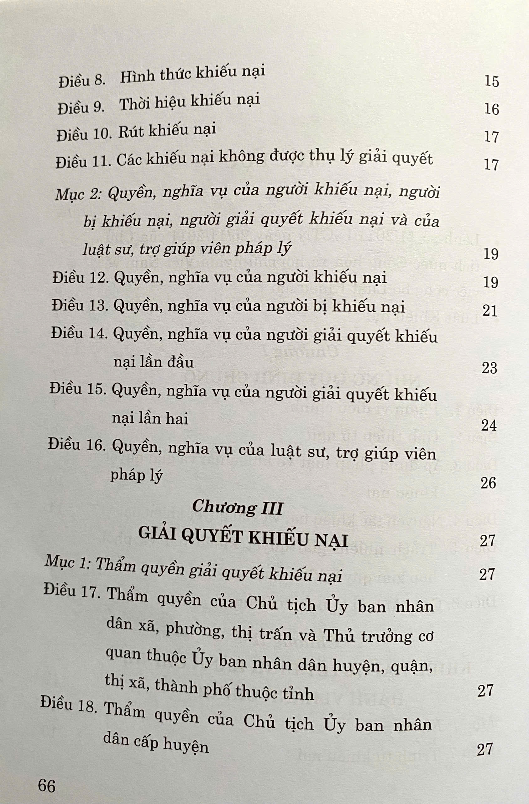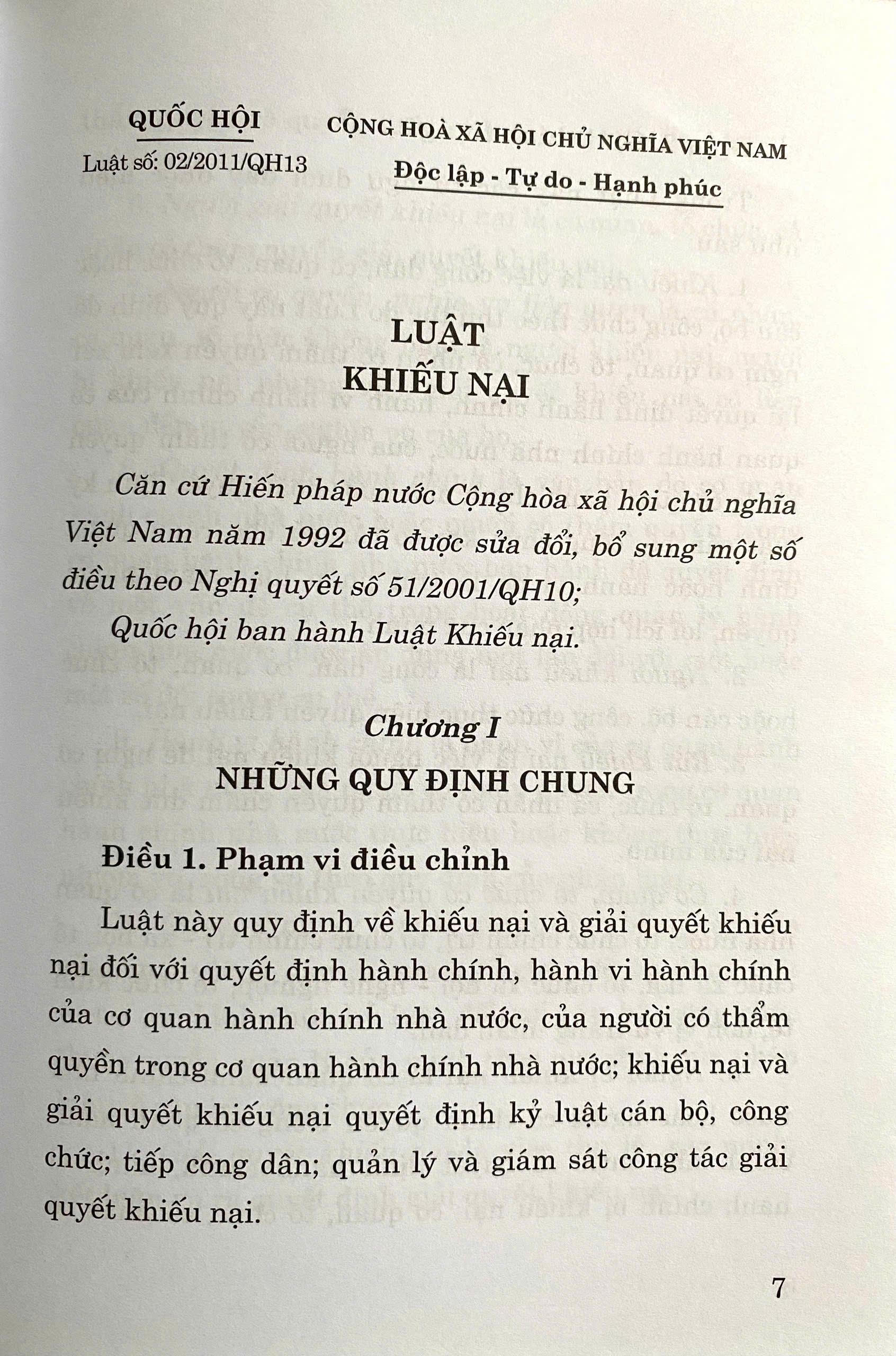 Mua tại TiktokLuật Khiếu Nại số 02/2011/QH13 đã được Quốc Hội khoá 13 thông qua ngày 11 tháng 11 năm 2011. Luật gồm có 8 Chương, 70 Điều. Luật có hiệu lực áp dụng từ ngày 01-07-2012.