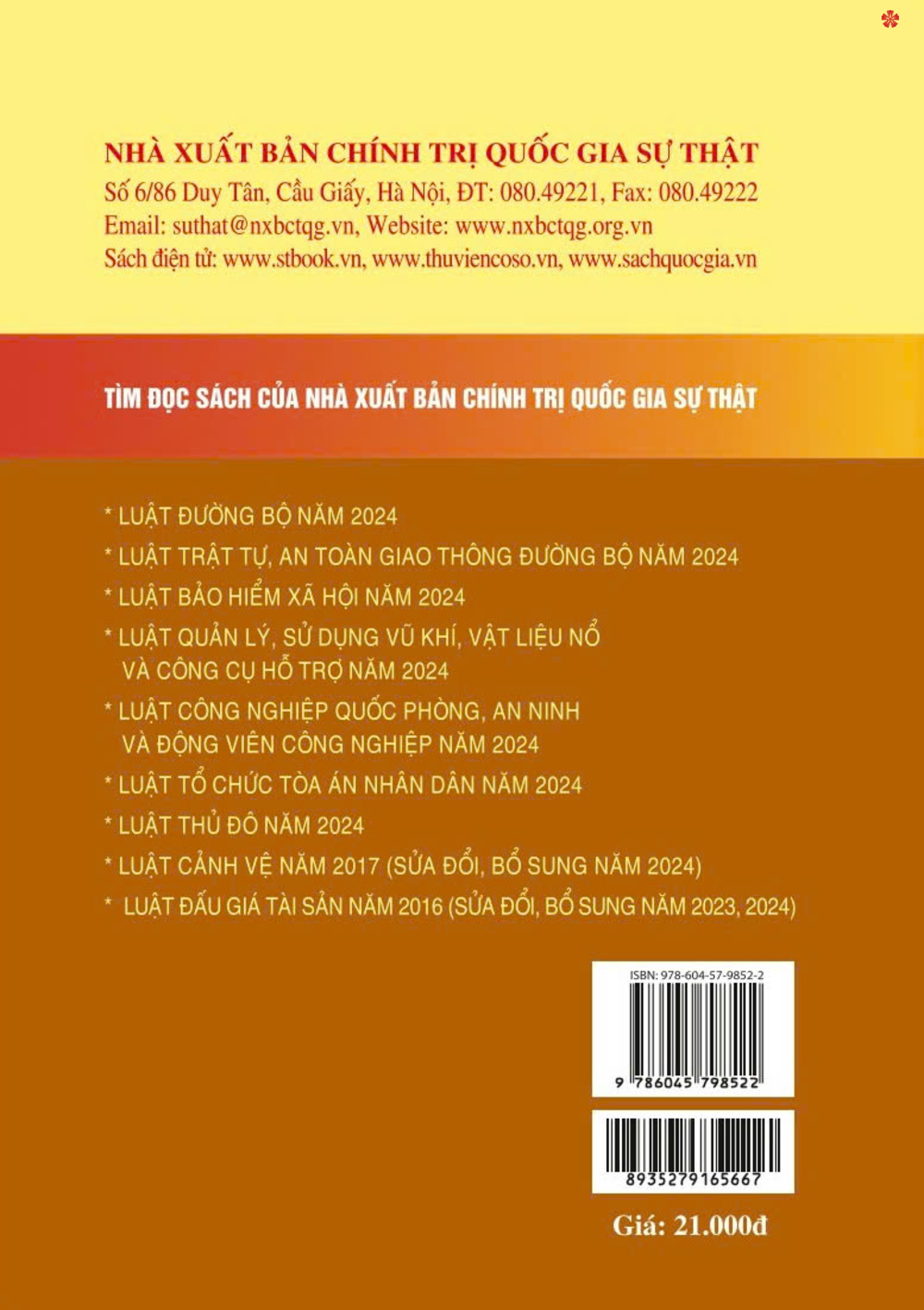 Nhằm đáp ứng nhu cầu của bạn đọc trong việc nghiên cứu, tìm hiểu, áp dụng pháp luật một cách thuận tiện, đầy đủ và thống nhất, Nhà xuất bản Chính trị quốc gia Sự