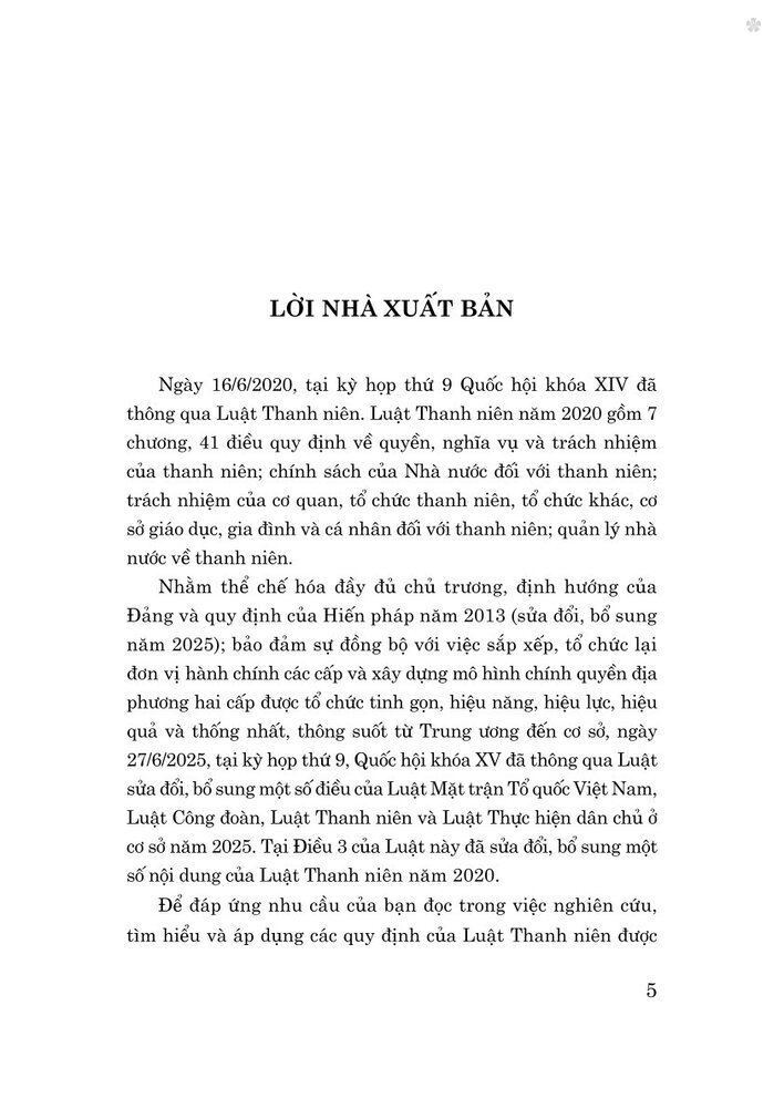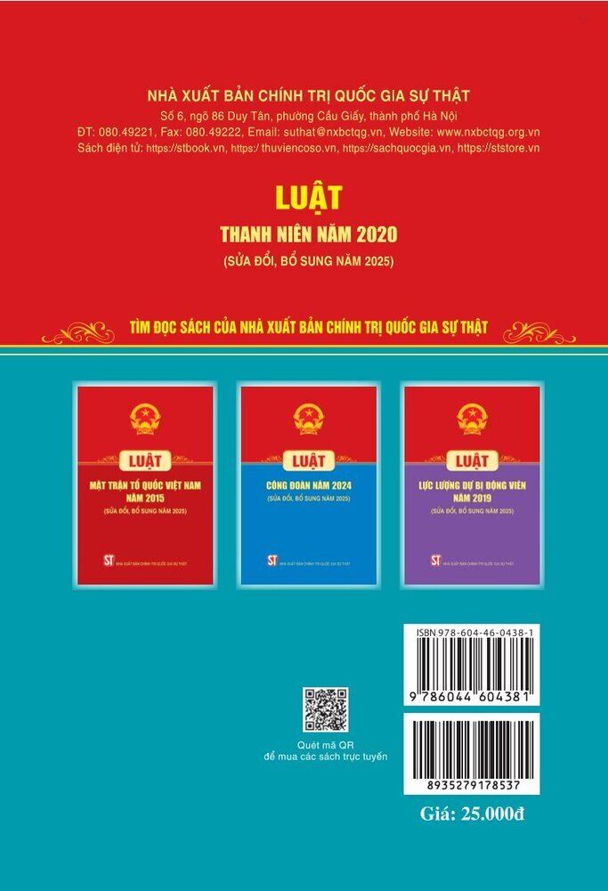 Luật Thanh niên năm 2020 (sửa đổi, bổ sung năm 2025) Khổ 13x19cm Năm 2025