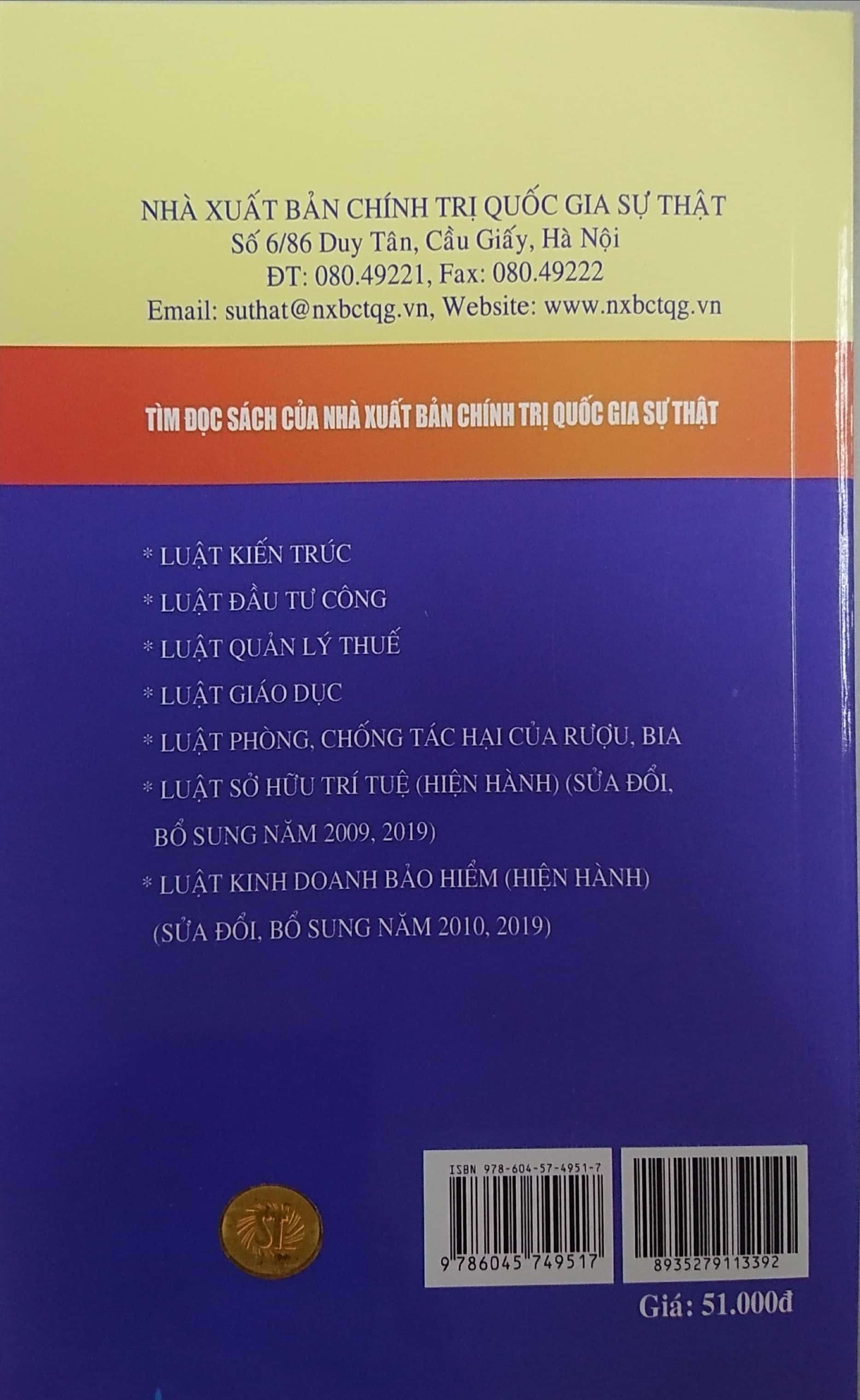 Sách - Luật Thi Hành Án Hình Sự Hiện Hành Tác giả: Quốc Hội Nhà xuất bản: Chính Trị Quốc Gia Sự Thật Khổ sách: 14.5*20.5cm Phát hành: 2022 Công ty phát hành: Nhà sách