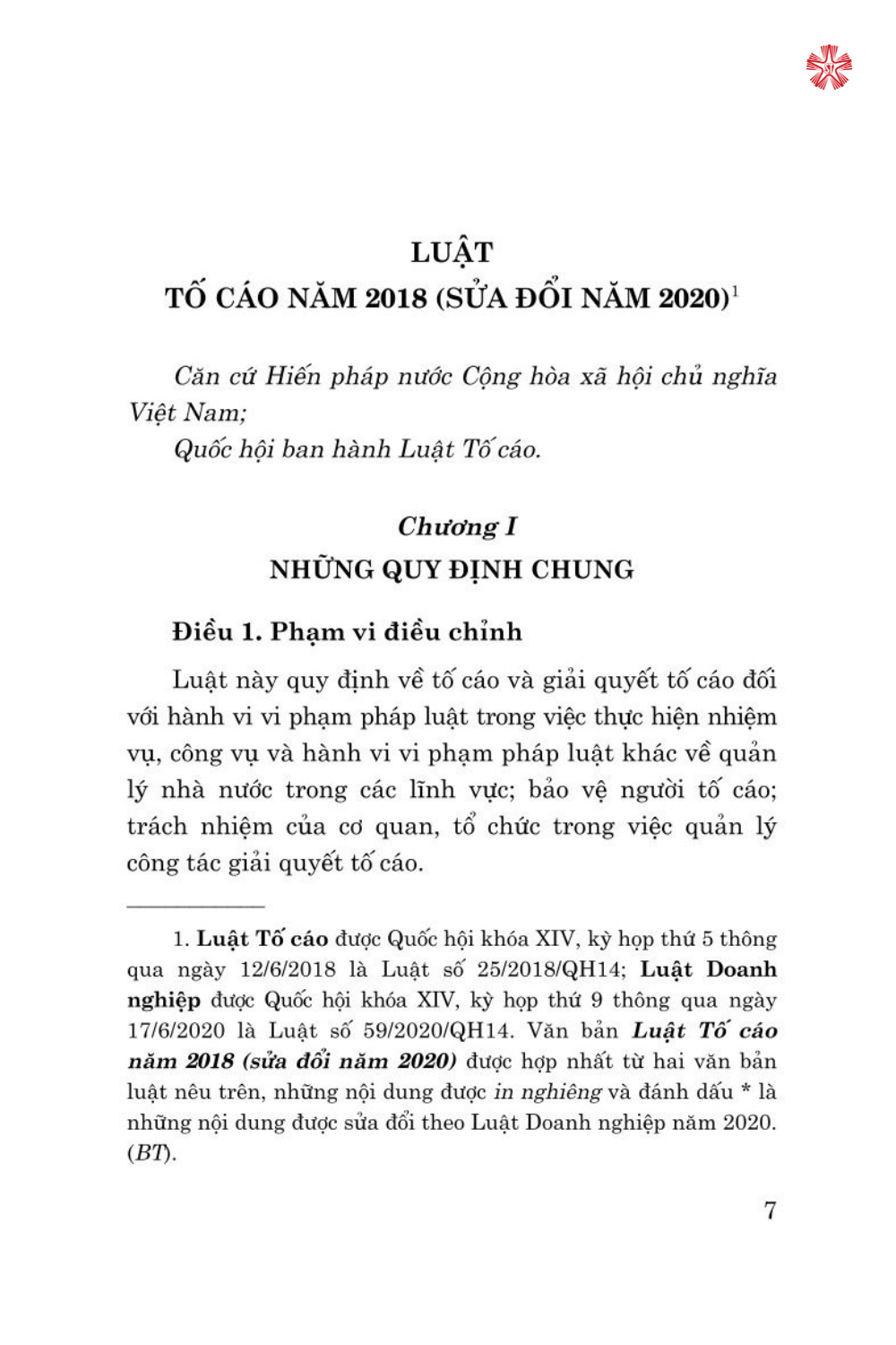 Chương 3: Giải quyết tố cáo đối với hành vi vi phạm pháp luật trong việc thực hiện nhiệm vụ, công vụ:- Mục 1: Thẩm quyển giải quyết- Mục 2: Hình thức tố cáo, tiếp nhận, xử lý ban đầu thông tin tố cáo.- Mục 3: Trình tự, thủ tục giải quyết tố cáo.