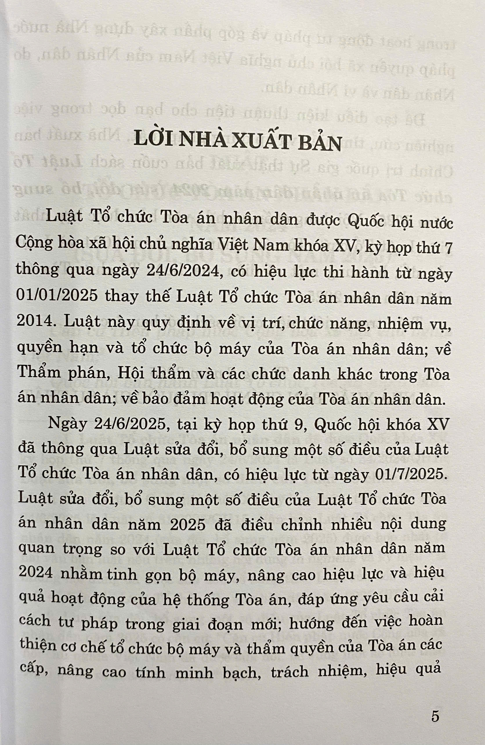 Luật Tổ chức Tòa án nhân dân năm 2024 (sửa đổi, bổ sung năm 2025) Khổ sách 13x19 Năm xuất bản 2025