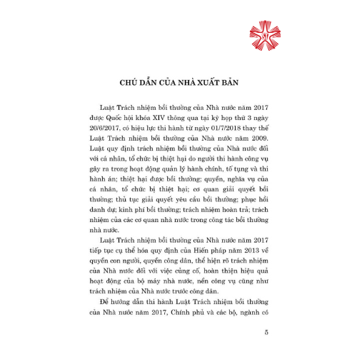 Nhằm cung cấp cho bạn đọc các văn bản quy phạm pháp luật trực tiếp quy định về trách nhiệm bồi thường của Nhà nước, Nhà xuất bản Chính trị quốc gia Sự thật xuất bản cuốn sách Luật Trách nhiệm bồi thường của Nhà nước năm 2017 và các văn bản hướng dẫn thi hành.