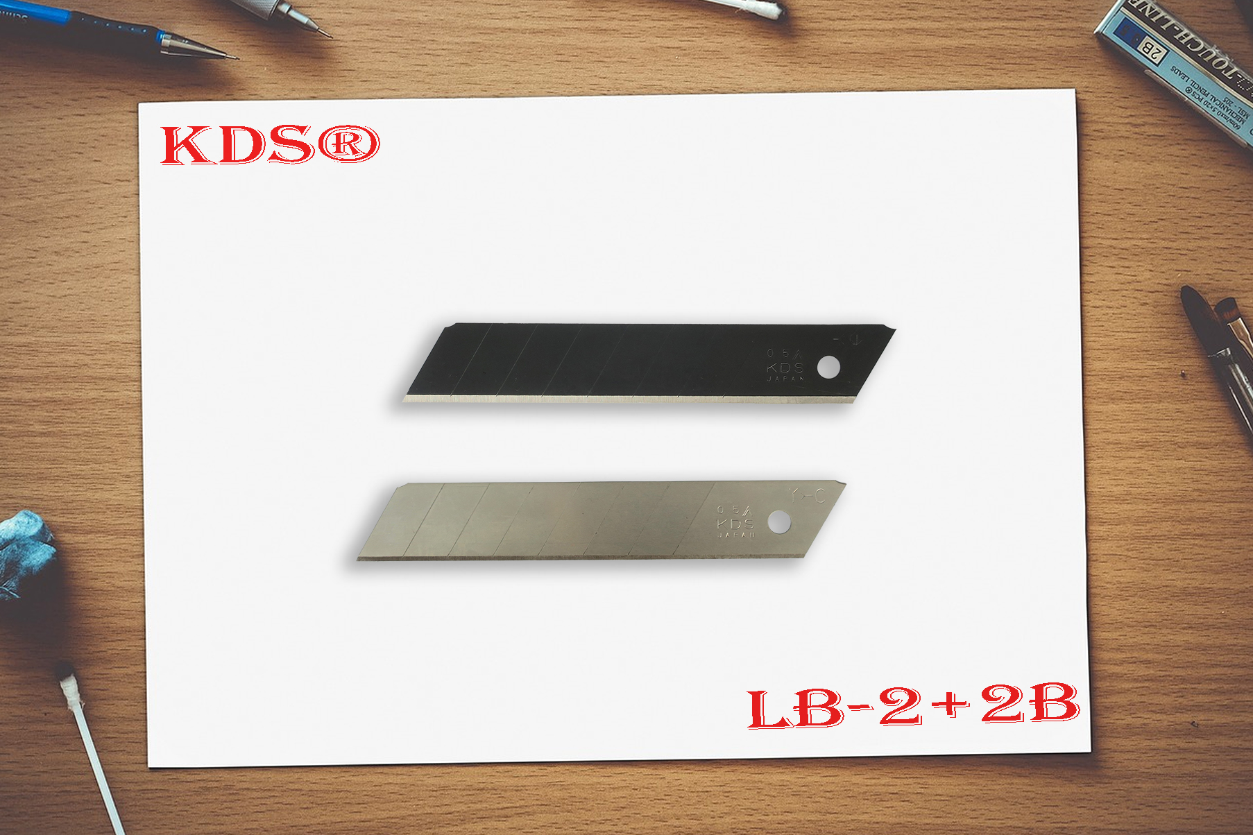 Lưỡi dao rọc giấy đa năng 18mm KDS LB-2+2B Thông số kỹ thuật: - Chất liệu : SK2 - Kích thước: 100 x 18 x 0.5mm - Lưỡi màu đen. - Số đốt: 8. - 1 hộp: 4 lưỡi (2 lưỡi đen + 2 lưỡi trắng) - Trọng lượng: 50g/hộp. - Hãng : KDS - Xuất xứ: Japan Dao rọc giấy cạnh sắc một bên KDS LB-5BS có những ưu điểm sau: - Chất liệu SK2 cùng với độ cứng tuyệt vời do bàn tay người Nhật luyện thành, làm lưỡi dao rọc giấy rất cứng cáp khó bị gãy lưỡi hay mẻ lưỡi khi bạn đang sử dụng để cắt. Dù lưỡi rất sắc bén nhưng với một lực đè mạnh để cắt lưỡi vẫn không bị hư hại gì. - Mài lưỡi một bên giúp cho lưỡi dao đa năng hơn sử dụng cho nhiều việc hơn như rọc giấy, cắt carton, cắt foormica, cắt nhựa, cắt thạch cao, cắt ván ép,... Đặc biệt hơn lưỡi dao LB-5BS còn có thể được dùng để cạo sơn, cạo gioăng, cạo tường, cạo keo,... - Với công nghệ mài dao của Nhật được cả thế giới công nhận, lưỡi dao Nhật rất sắc bén những đường cắt không hề làm sản phẩm bị hư hại, bị đứt gãy. Khi cắt giấy, bìa carton đường cắt rất đẹp và mịn. - Lưỡi dao rọc giấy LB-2+2B 1 bên thẳng nên khi cắt những sản phẩm dày sẽ giúp sản phẩm thẳng đẹp. - Lưỡi dao rọc giấy có 8 đốt rất tiết kiệm cho những bạn cắt giấy có độ dày dưới 10mm vì những đốt này có thể bẻ gãy được sau thời gian sử dụng bị mòn lưỡi. - Lưỡi dao rọc giấy KDS LB-2+2B dành cho tất cả các con dao rọc giấy trên thị trường Việt Nam có bản 18mm. Và rất hay lưỡi cũng dành cho dao cạo tường, cạo sơn