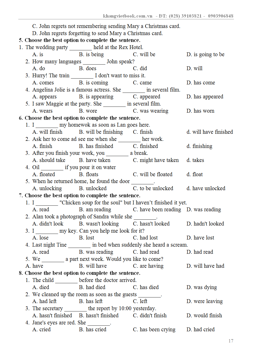 Combo Ngân Hàng: Câu Hỏi Trắc Nghiệm Tiếng Anh+Chuyên Đề Điền Từ Vào Đoạn Văn Tiếng Anh +Chuyên Đề Ngữ Pháp TA Công ty phát hành: Nhà Sách Hồng Ân Tác Giả: Nhiều tác