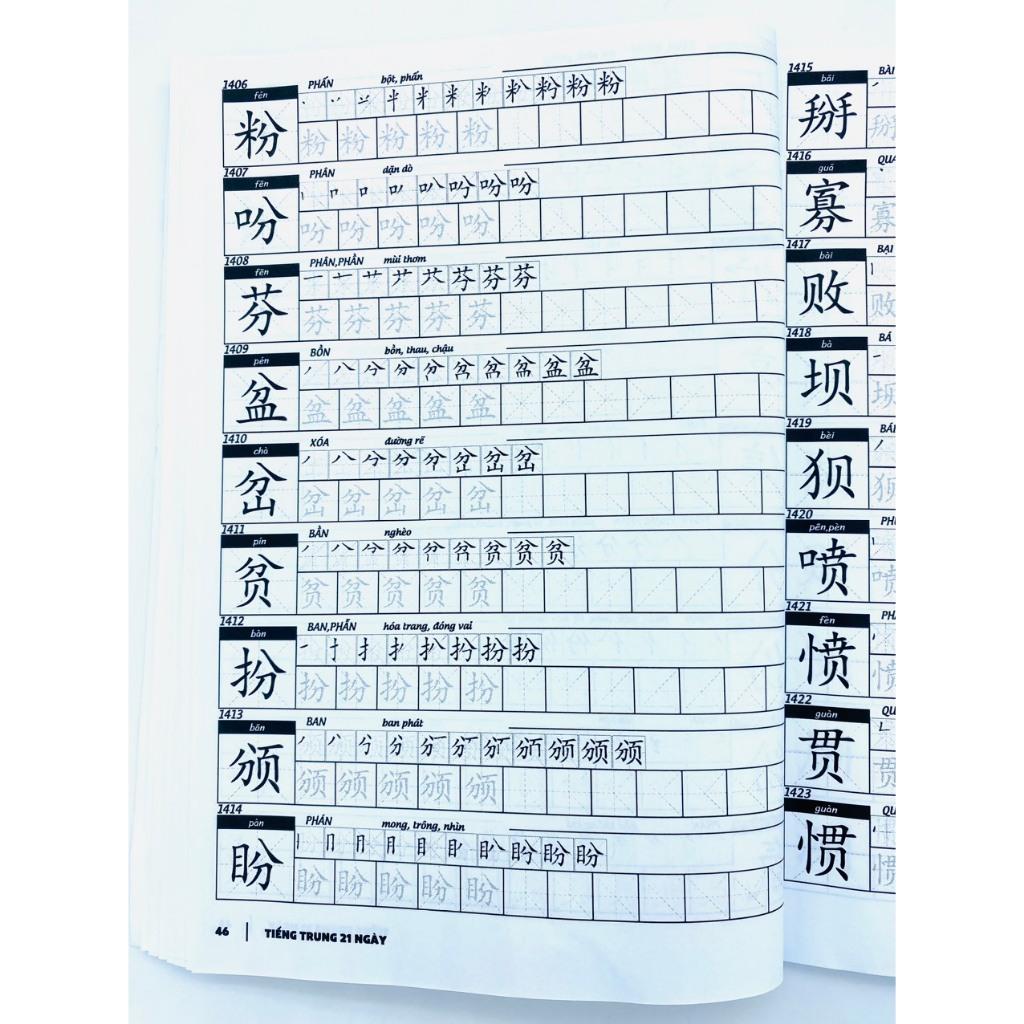 Luyện viết gồm 38 nét cơ bản và 42 bộ thủ cơ bản Thông tin sản phẩm: - Tác giả: Nhóm Tác Giả Tiếng Trung 21 Ngày - Công ty phát hành: CÔNG TY TNHH