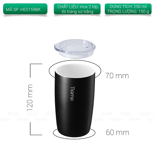 ✨Ly cà phê trà inox phủ sứ chân không Tiamo 250ml