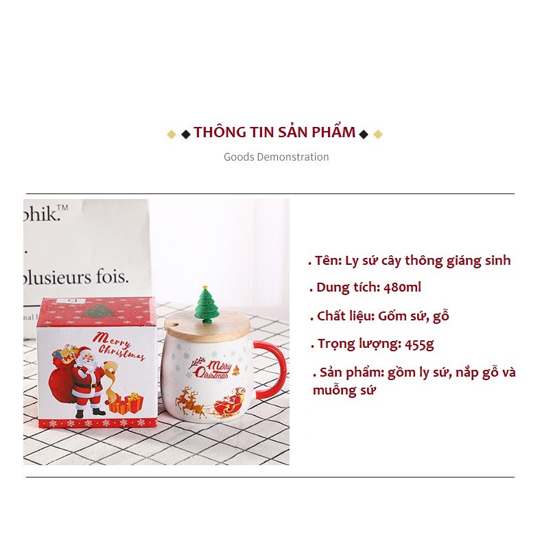 ✨Ly sứ noel 480ml có muỗng sứ và nắp gỗ dễ thương