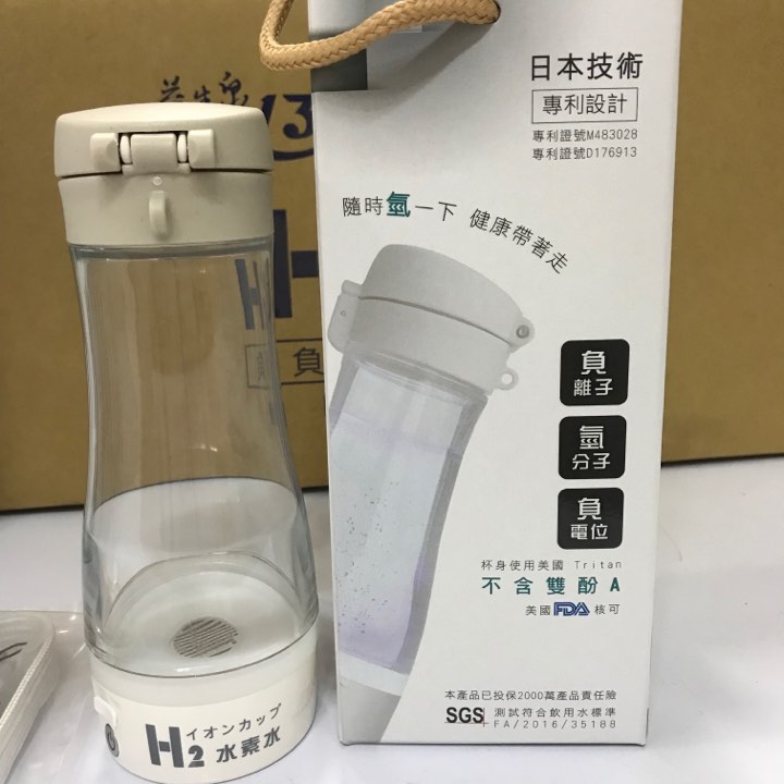 Nồng độ Hydro hòa tan: 1400ppb Vật liệu nắp: AS Vật liệu bình: ABS Kích thước: Chiều cao 16,4 cm× đường kính 7,5 cm. Phương pháp tạo: Phương pháp điện phân DC