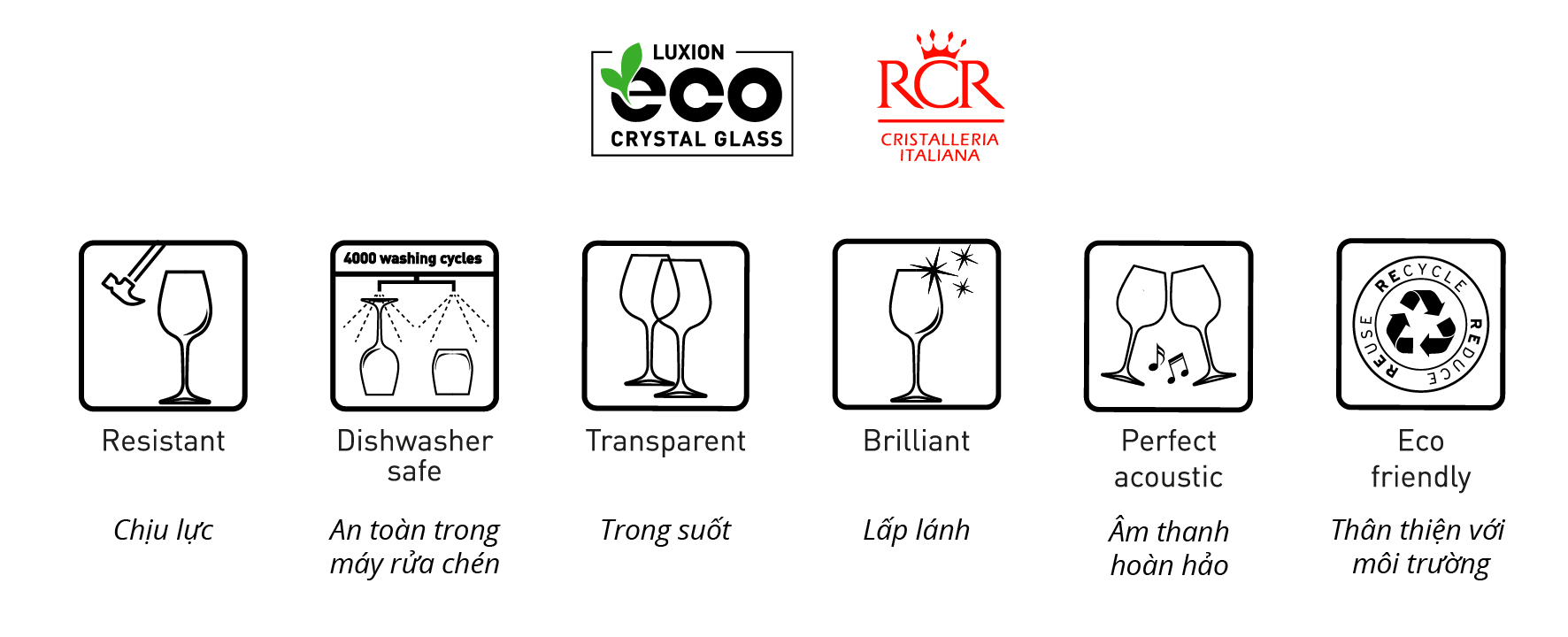 • Không chỉ làm người dùng cảm nhận được màu sắc, độ tinh khiết và sự sóng sánh của thức uống ngon mà còn có tác dụng nâng tầm mỹ cảm cho các bữa tiệc.