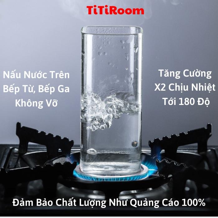 Ly thủy tinh vuông chịu nhiệt MILK TEA 400ml cao cấp sang chảnh phong cách Vintage dung uống sinh tố TiTi Room