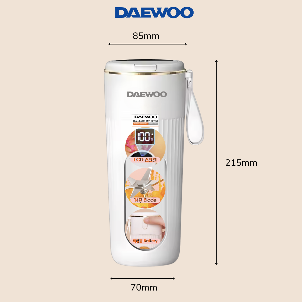 Máy xay sinh tố mini Daewoo DWBL-3424 chính là lựa chọn hoàn hảo – kết hợp giữa thiết kế Hàn Quốc hiện đại, công nghệ thông minh và tính tiện dụng vượt trội cho cuộc sống năng động!