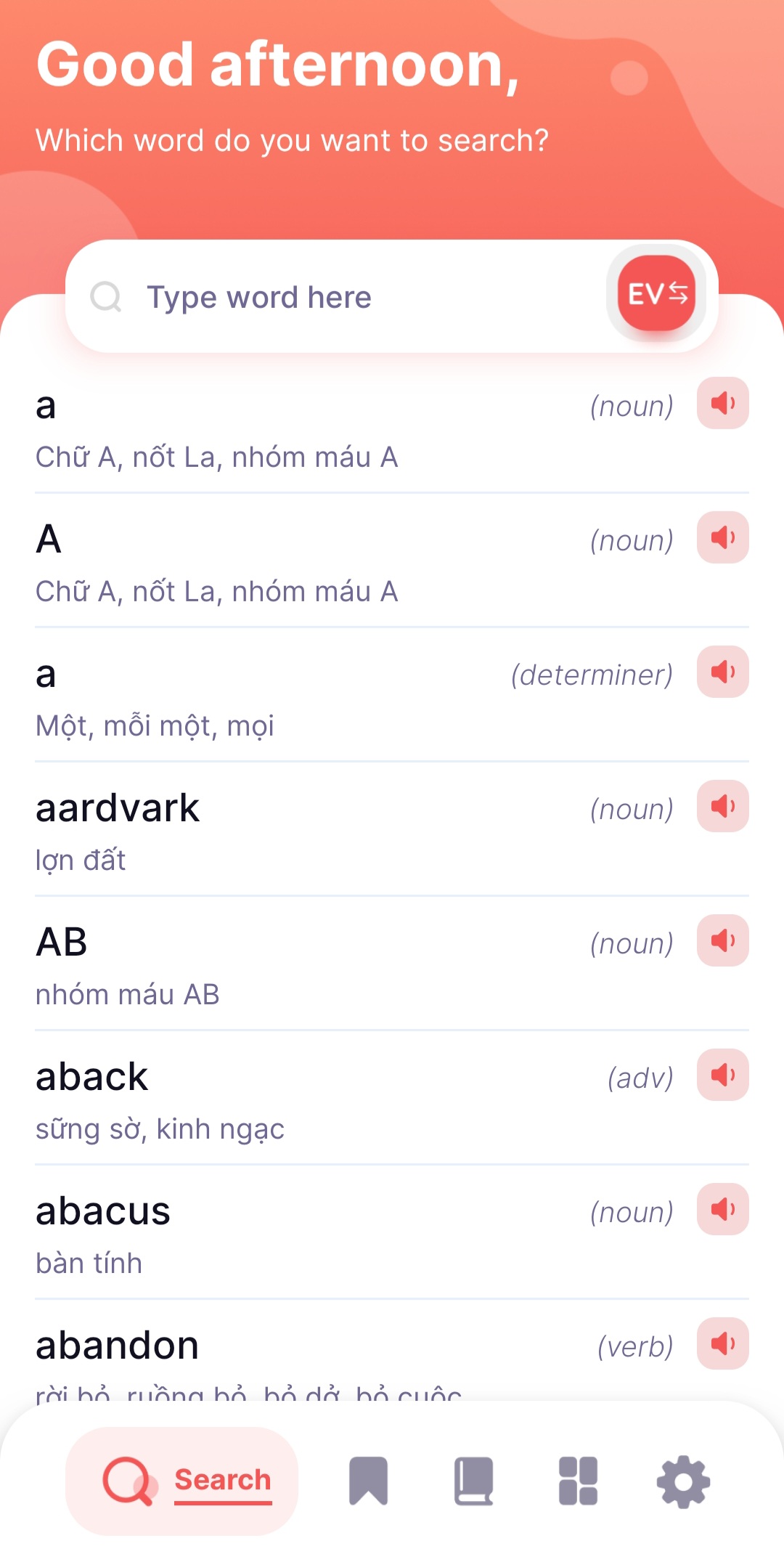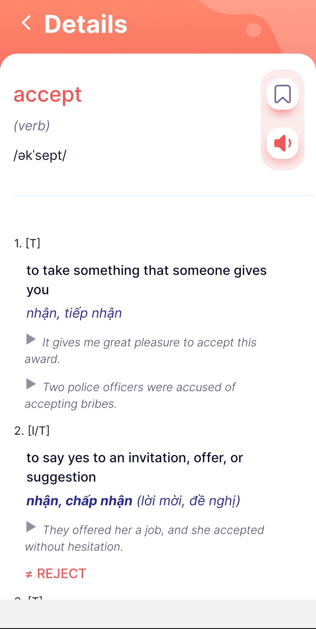 • Hỗ trợ bookmark lưu lại những từ vựng cần quan tâm