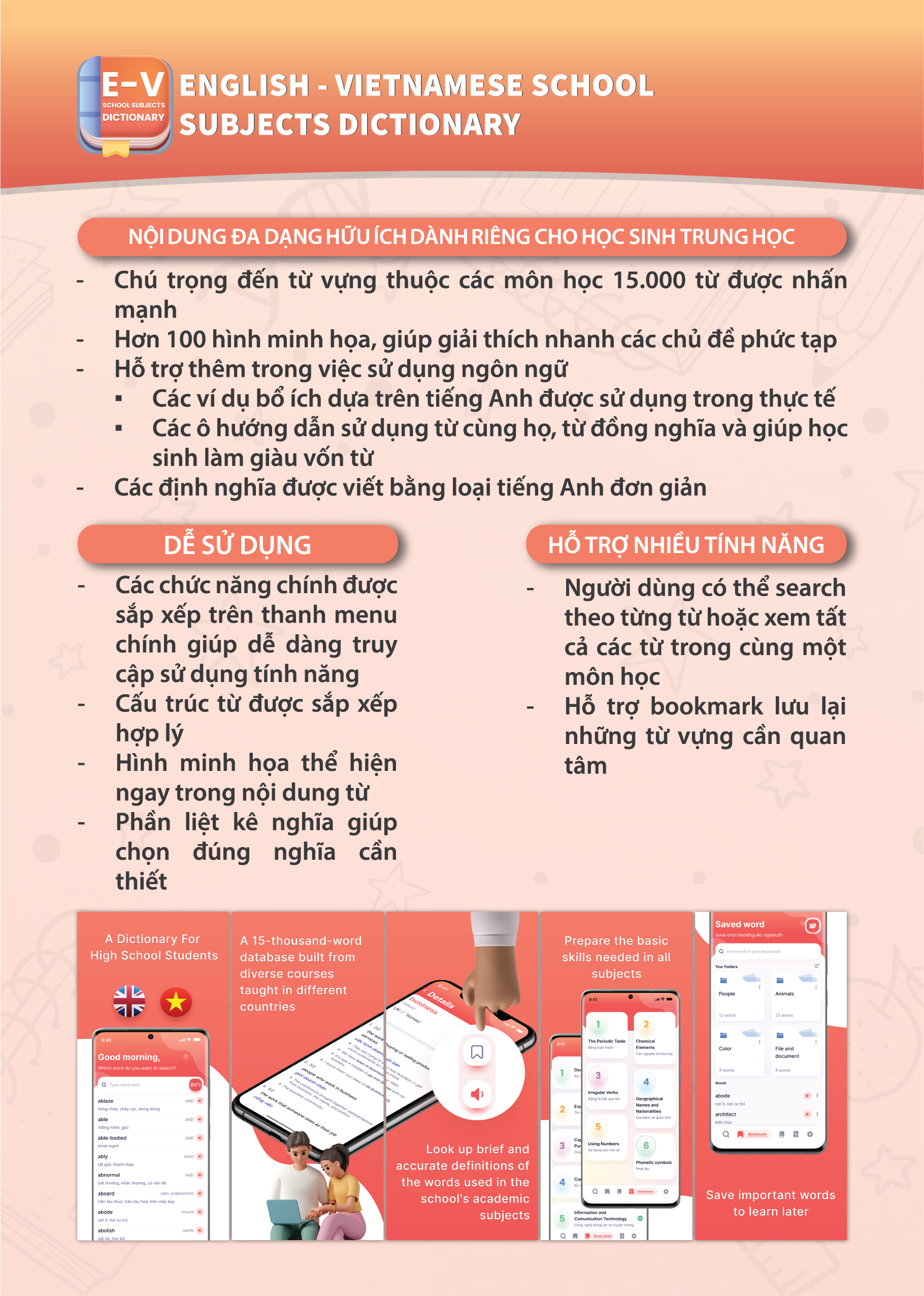 • Chú trọng đến từ vựng thuộc các môn học 15.000 từ được nhấn mạnh