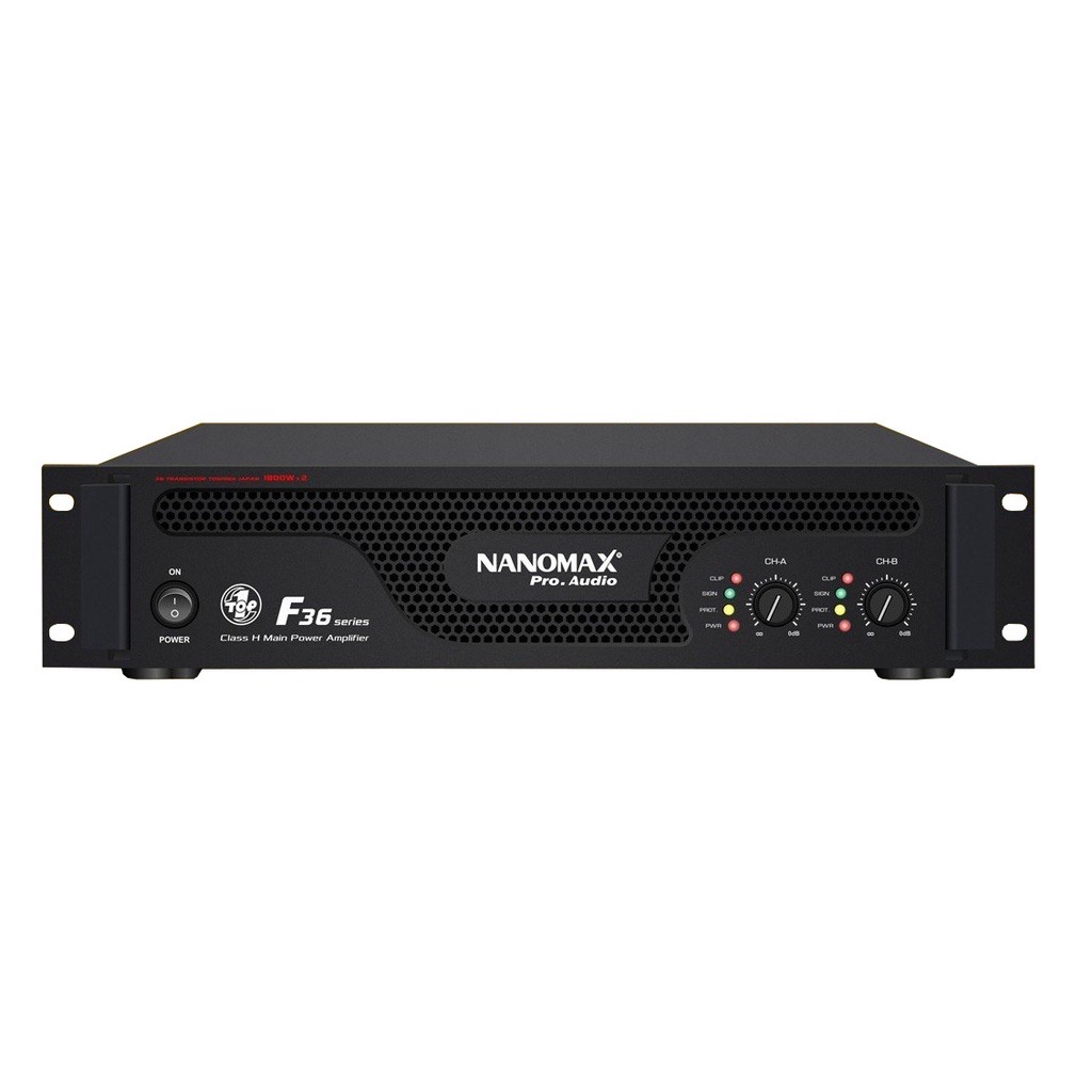 Mua tại TiktokMain công suất Nanomax F36 Thông số kỹ thuật: Dãy tần hoạt động: 20Hz - 20KHz Mạch công suất: Class H (Chức năng bù nguồn) Sò công suất: 36 sò ToshibaJapan Công suất: 1800W / 2 Channel Điện áp: AC-220V / 50Hz Kích thước (DxRxC): 430 x 300 x 90 mm