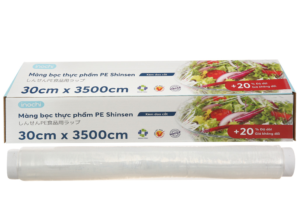Màng bọc thực phẩm PE Shinsen Inochi Đạt tiêu chuẩn HACCP, hàng Việt Nam chất lượng cao Giúp bạn bảo quản thức ăn luôn tươi ngon và tránh bụi bẩn Phù hợp với không gian sống hiện đại