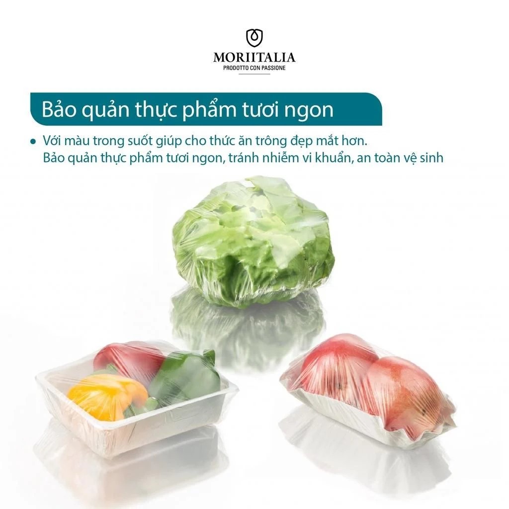 Quy Cách Túi:1 túi gồm 100 màng - Màng bọc thực phẩm co dãn nên phù hợp hầu hết các vật dụng cụ đựng thực phẩm như:đĩa, rổ rá, xoong,chả -Bọc nhanh gọn, tiện dụng