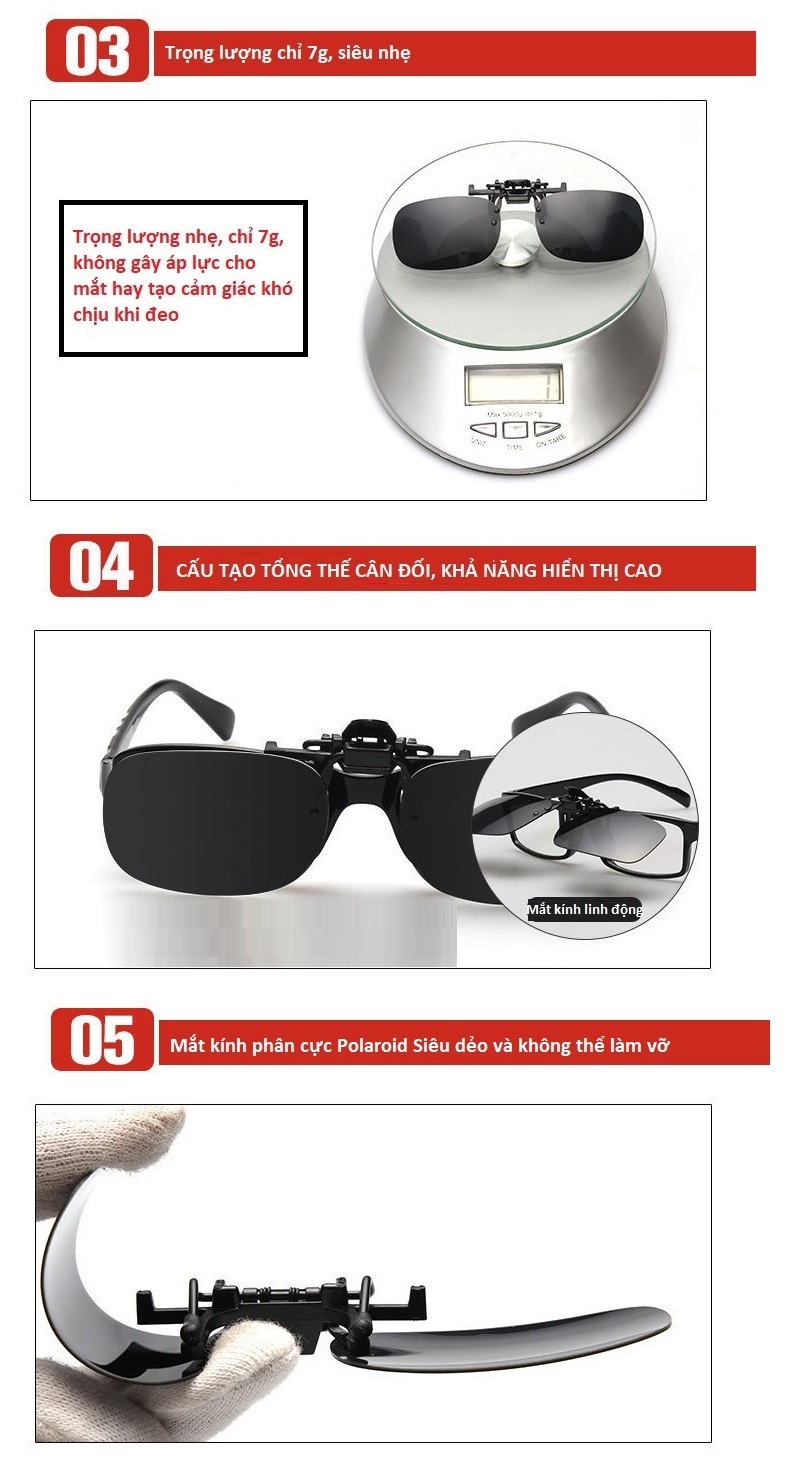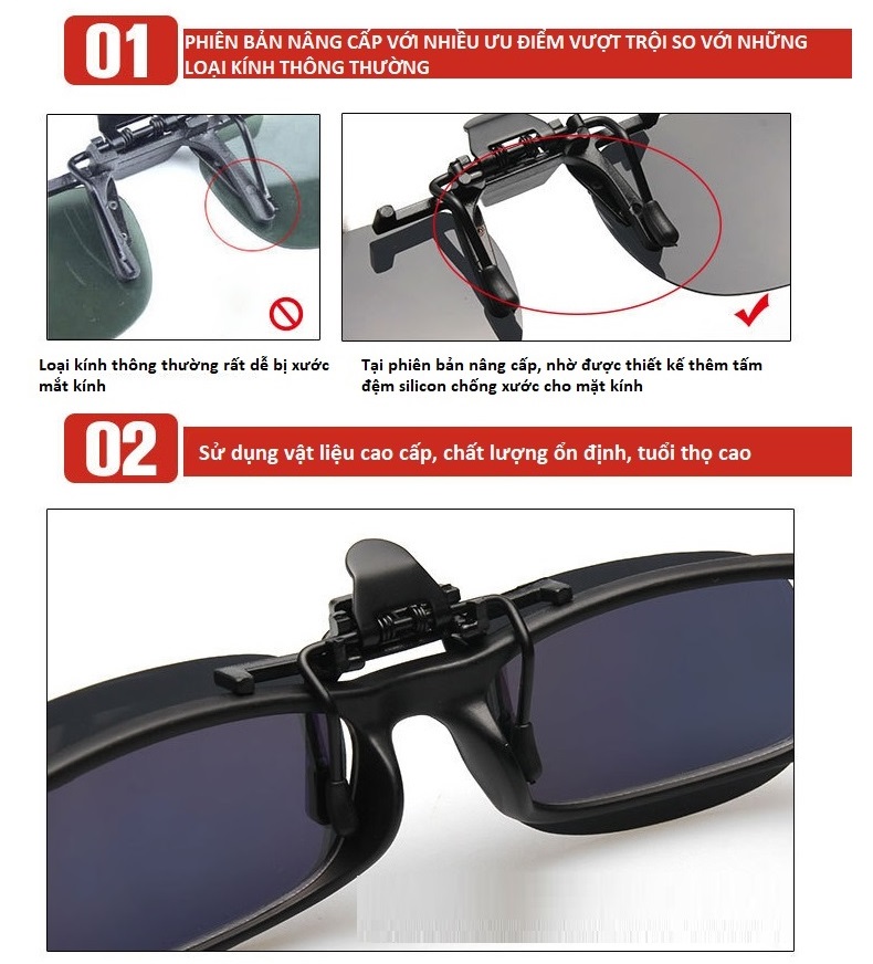 An toàn khi sử dụng.  Chất liệu cao cấp bền đẹp Thiết kế thời trang, phù hợp với mọi đối tượng Kính mắt kẹp phân cực là mẫu kính cao cấp. Thiết kế dành riêng