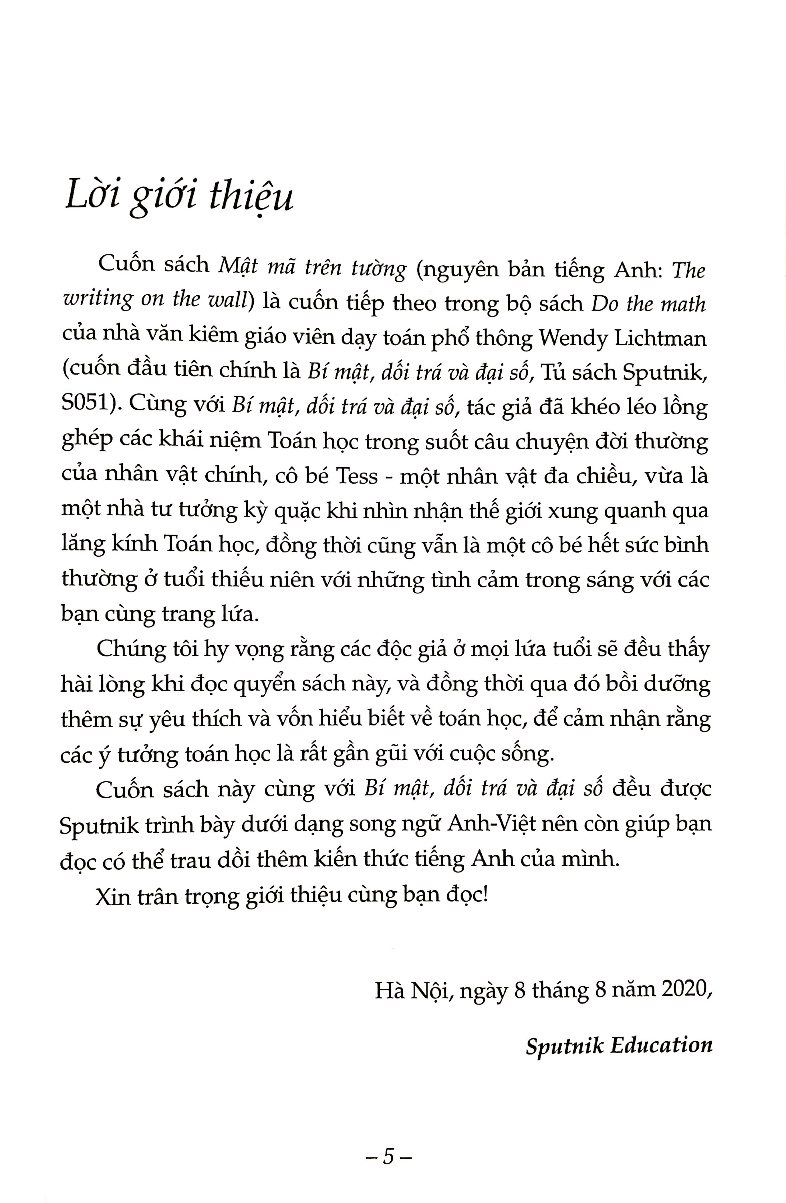 Mời các bạn đón đọc Tập truyện trinh thám của Lichtman, được Sputnik xuất bản dưới dạng song ngữ, có thể biết thêm các kiến thức về toán gắn liền với cuộc sống, kiến thức về tiếng Anh và một phần văn hoá Mỹ khi đọc sách.