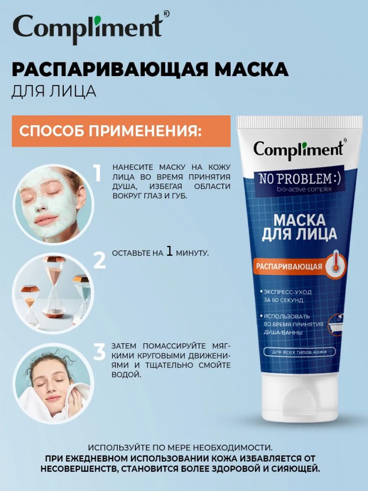 ✨Mặt nạ đất sét xông hơi nóng ấm Compliment No Problem Steaming Face Mask 80ml sạch sâu giảm mụn sáng da