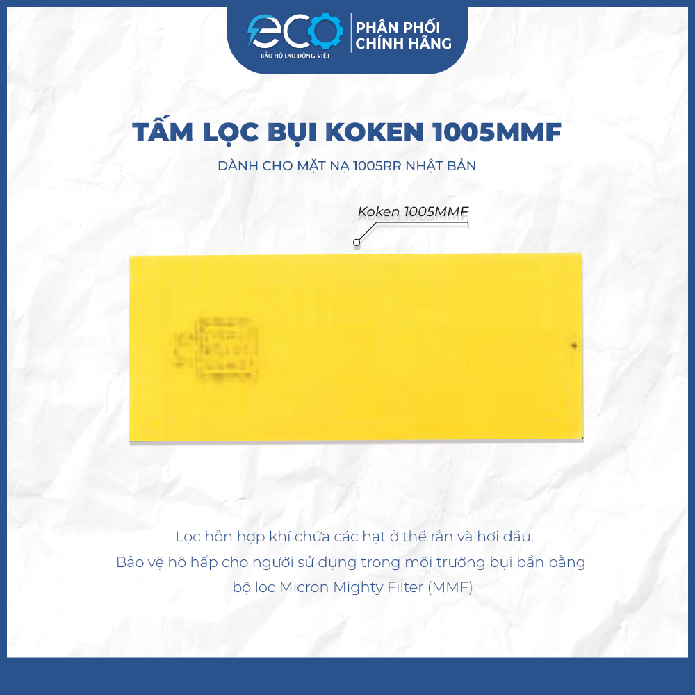 Tấm lọc Koken 1005MMF là phụ kiện chính hãng dành cho mặt nạ phòng bụi Koken 1005RR, giúp tăng cường khả năng lọc bụi siêu mịn, đảm bảo an toàn cho người lao động trong