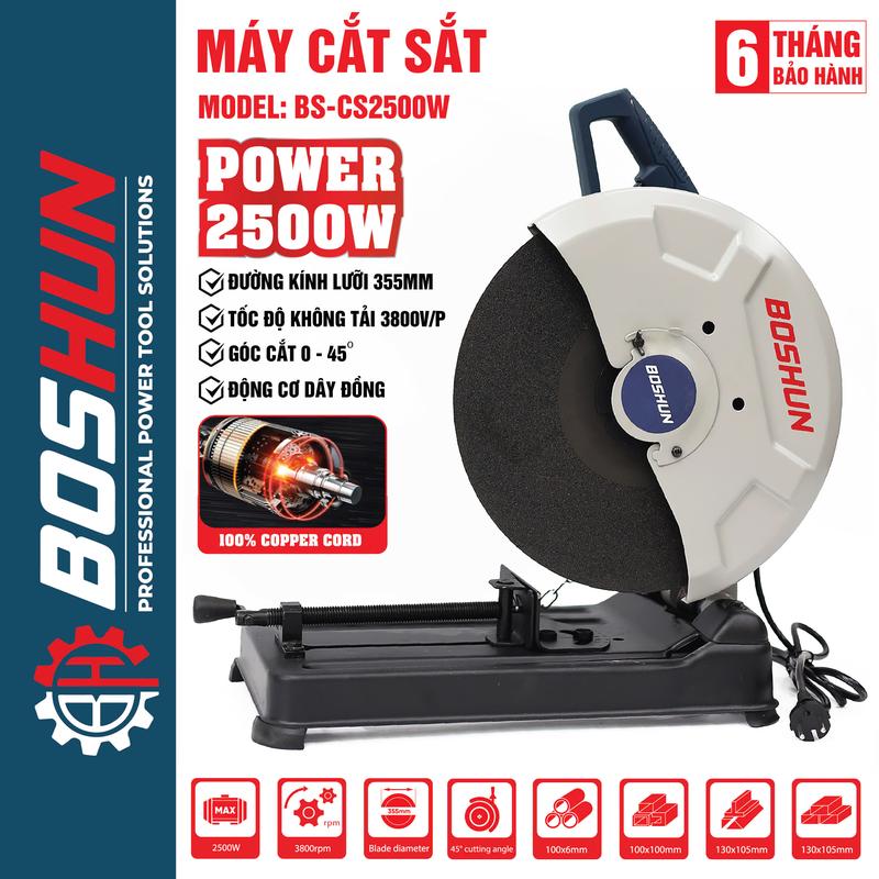 Máy Cắt Sắt Bàn Boshun - BS-CS2500W - Công Suất 2500W - Đường Kính Đĩa 355mm - Động Cơ Lõi Đồng - Bảo Hành Chính Hãg 6 Tháng