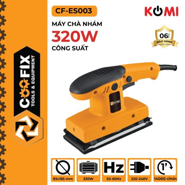 Coofix CF-ES003 vận hành với công suất đầu vào là 320W, tốc độ không tải tối đa 14.000 vòng/phút giúp chà nhám bề mặt gỗ hiệu quả.
